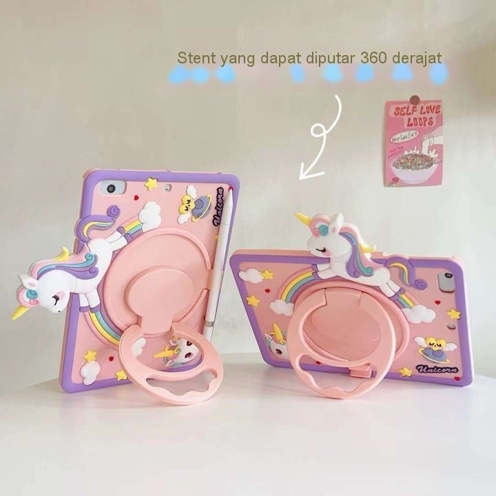 Samsung Galaxy Tab S9 FE 10.9/A9 8.7"/A9+ 11" 2023/A7 Lite / T225 / T220 | Tab A8 2019 T295 Tab A8 10.5" 2022 X200 X205/S6 Lite Case Silikon Ring Stand Rotasi 360 + Bonus Tali Slempang Handle Silikon
