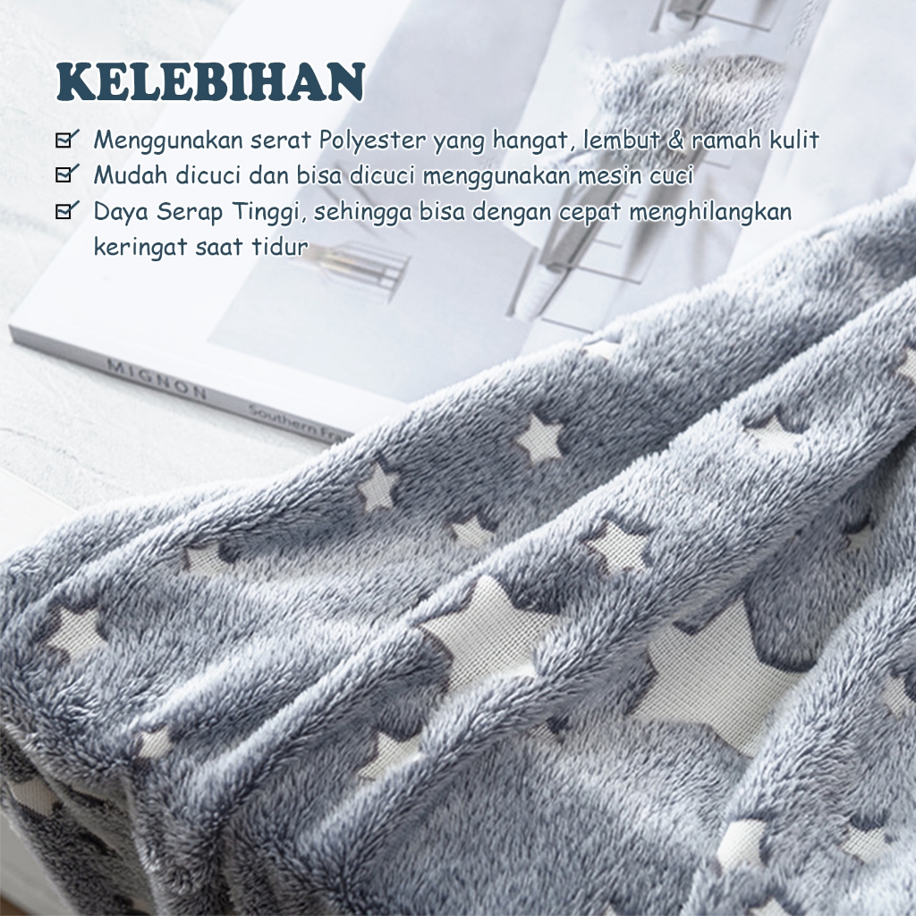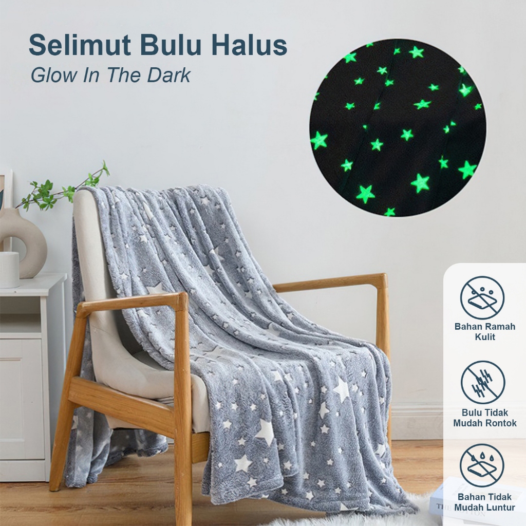 Selimut Bulu Glow in the Dark Ukuran 150 cm x 200 cm Bahan Microfiber, Ramah untuk Kulit / MT-2A