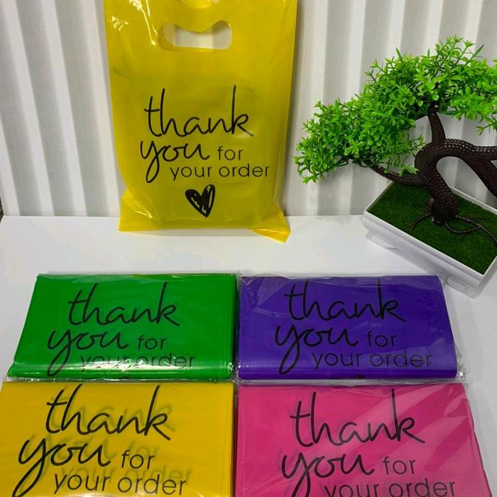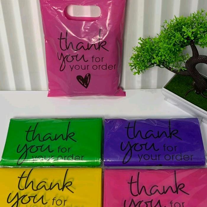 DP 0 PE WARNA ISI 50PCS UK 15X22 KANTONG PLASTIK MOTIF THANK YOU UNTUK SKINCARE HIJAB OBAT