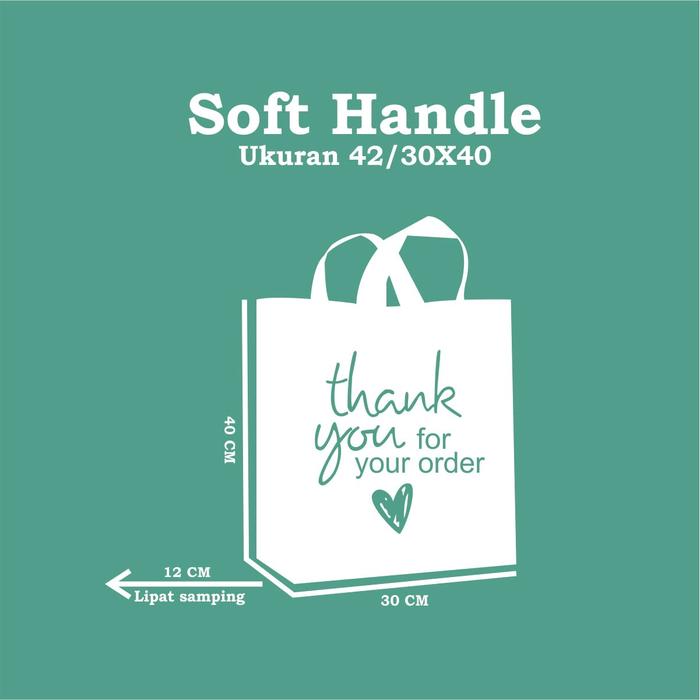DP 0 KANTONG PLASTIK SOFT HANDLE 4230X40 BAHAN PE MOTIF THANK YOU LIPATAN SAMPING KANTONG