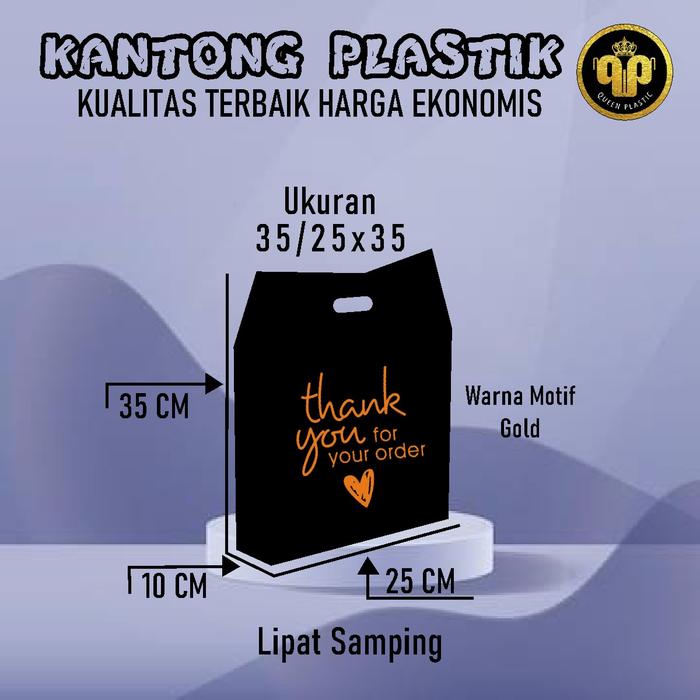 DP 0 KANTONG PLASTIK PE HITAM UK 3525X35 MOTIF THANK YOU LIPATAN SAMPING PE HITAM SILVER 3