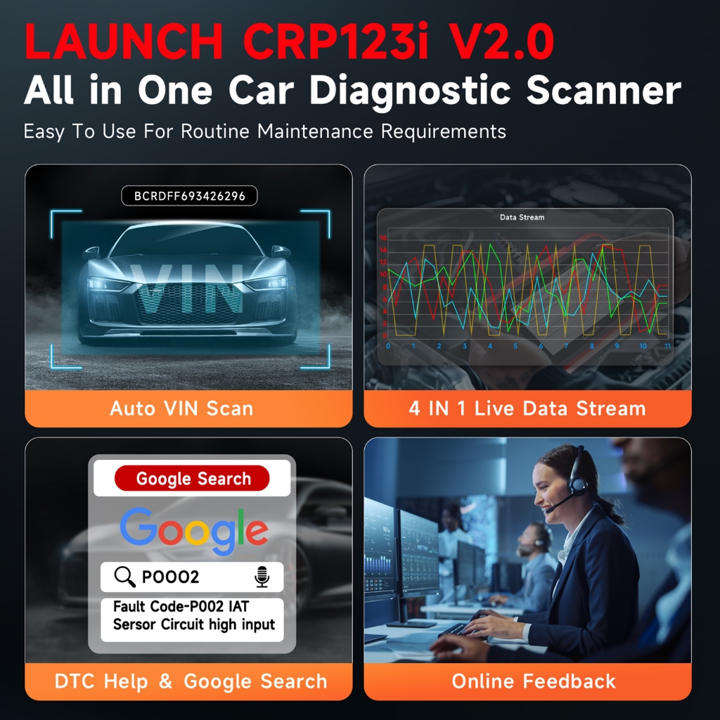 LAUNCH X431 CRP123i V2.0 Engine ABS SRS Transmission Car Diagnostic Tool OBD2 Scanner 4 System Scan+7 Reset Free Update