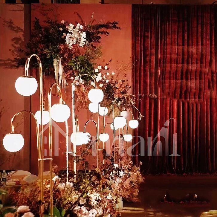 2 Set Lampu Hias Pelaminan 150cm Lampu Hias Vertikal 3 Kepala Lampu Standing Bulat LED Dekorasi Lampu Hias Dekorasi