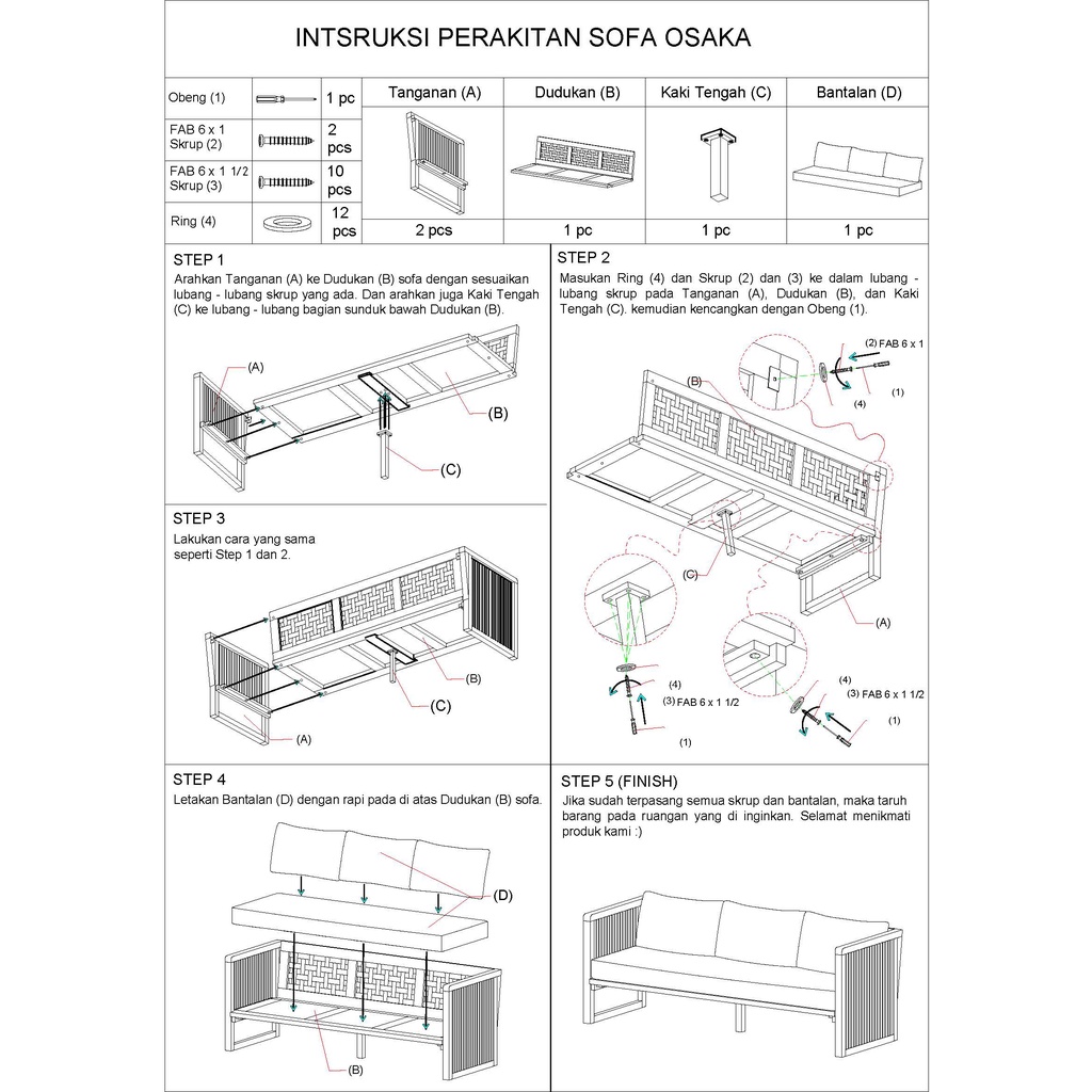 ADIKU.ID OSAKA Sofa 2 Seater - Sofa Minimalis - Sofa Kayu Solid