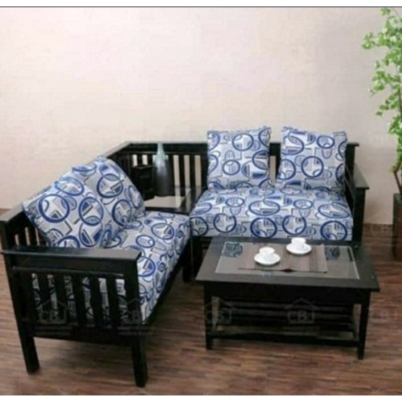 Sofa Sudut L Kayu minimalis + Meja kerang