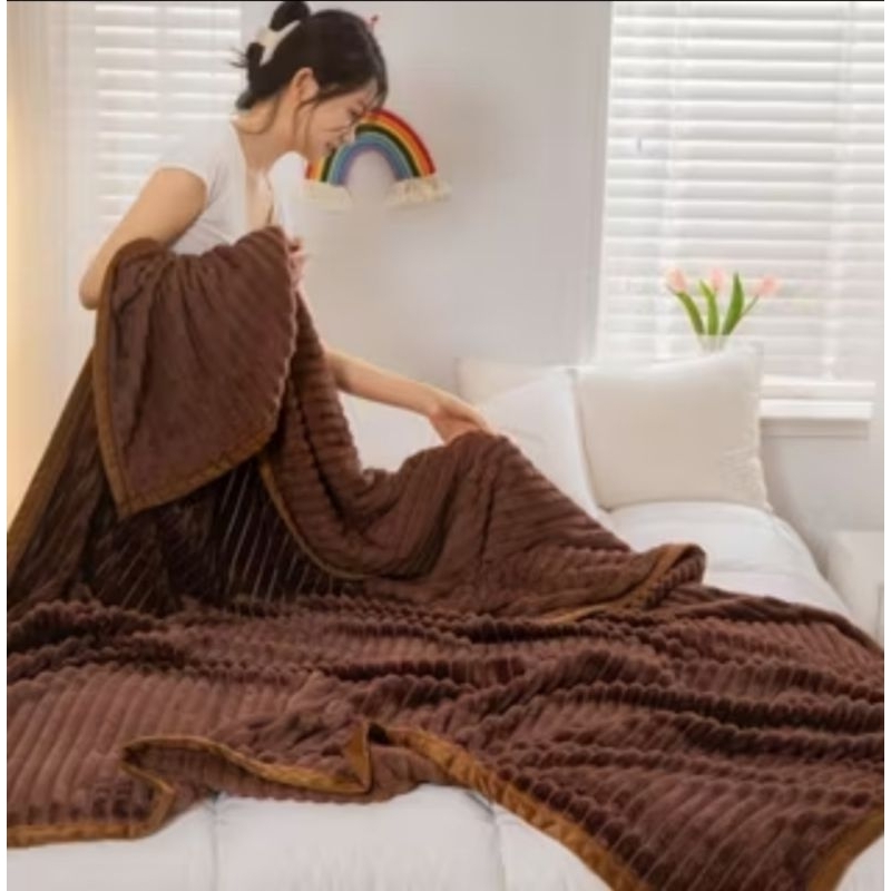 Selimut Bulu Dewasa Tebal Motif Embos Halus Lembut Embos Salur Selimut Dewasa Murah Berkualitas