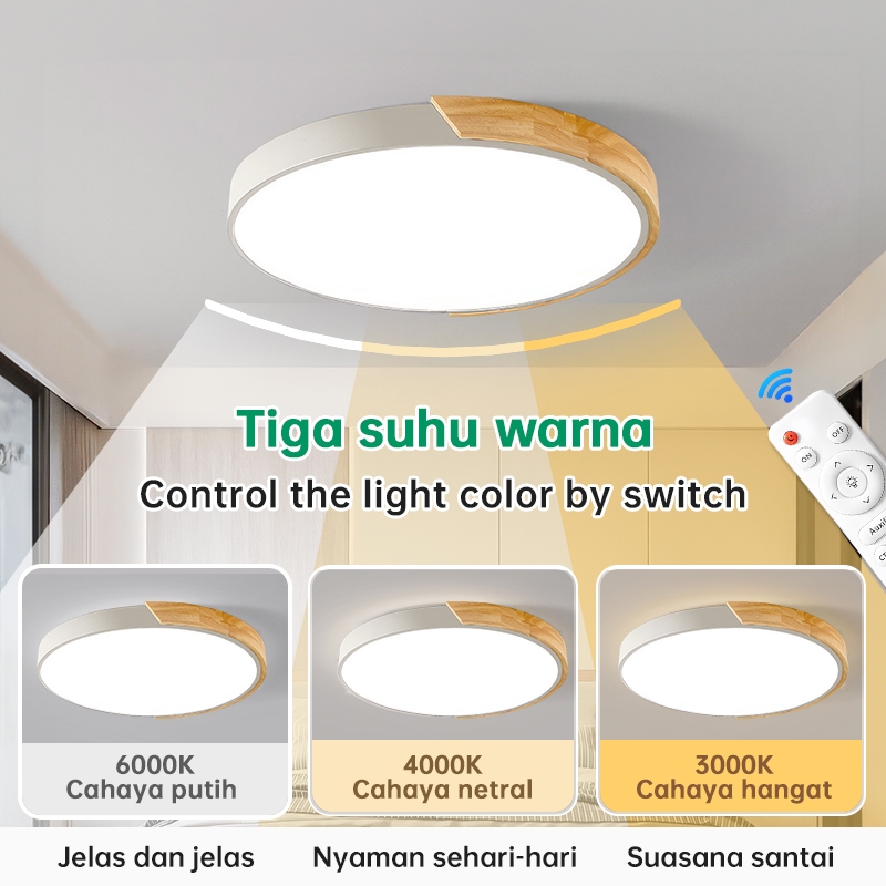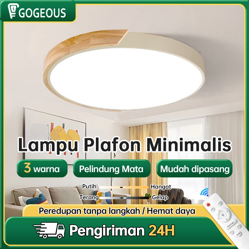 GOGEOUS Lampu Plafon Ruang Tamu Lampu Plafon Pvc 3 Warna 24w/36w/48w Lampu Kayu Terkendali Jauh Tamu Kamar Tidur Gantung