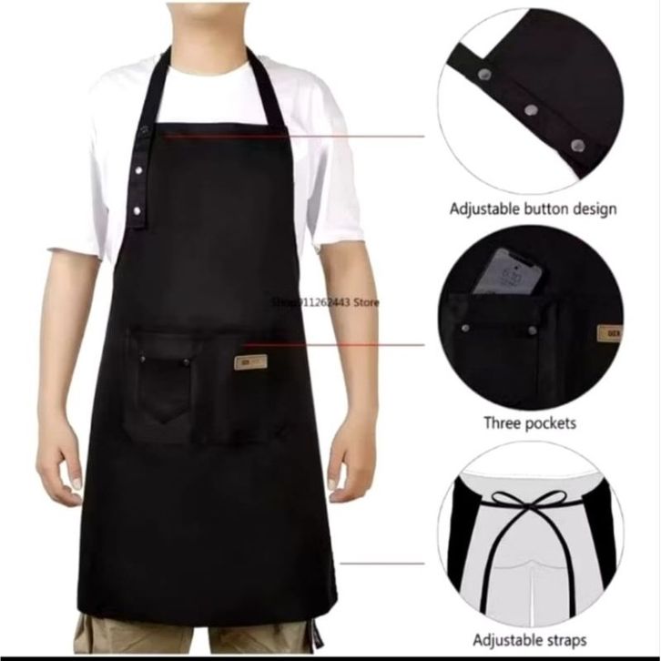 TERMURAH APRN Celemek Anti Air Apron Waterproof Pria Wanita Masak Pelayan Barista Barbershop Custom Bordir efimnf