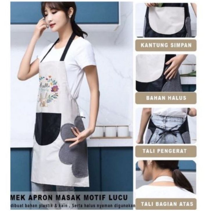 TERLARIS Celemek Masak Apron Anti Air Minyak bisa Lap Tangan Premium Quality Korean Style ufibh