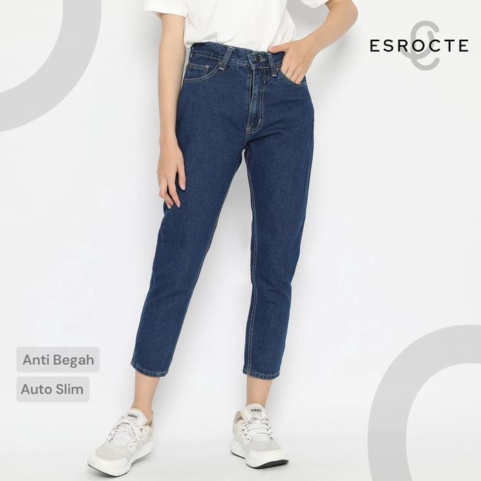 ESROCTE Celana Panjang Rubber/ Karet Boyfriend High Waist Jeans Wanita P31
