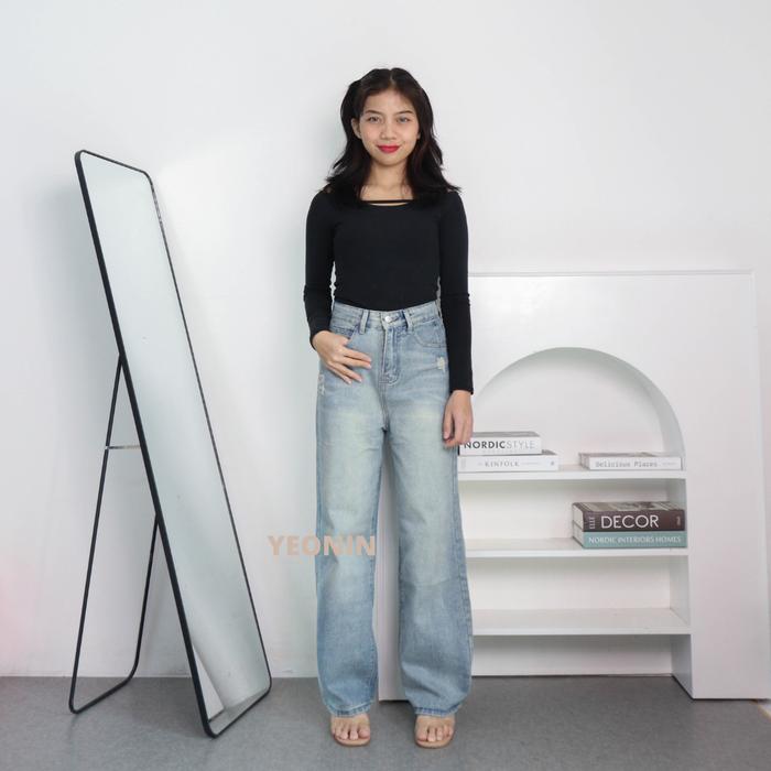 | YEONIN | Celana Panjang Wanita High Waist Ripped Baggy Jeans Premium Quality | 318 |