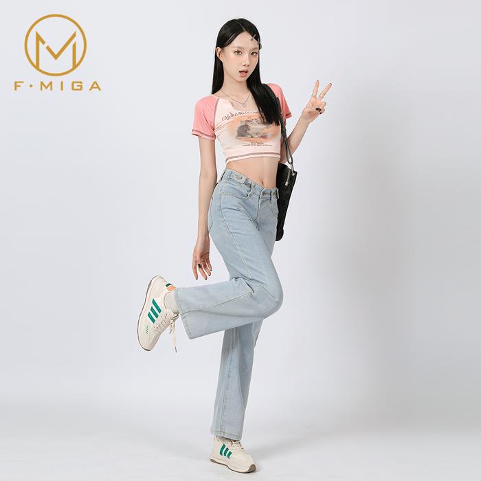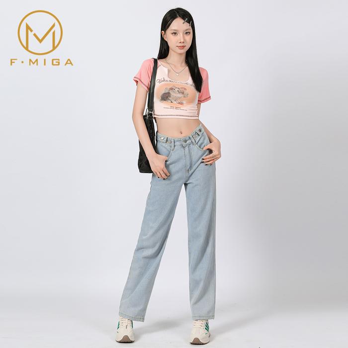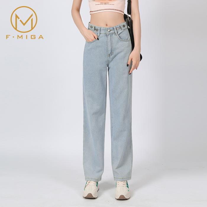 F·MIGA C2 Celana Jeans Wanita Higwaist Kulot Bagy Jeans Pinggang Yang Panjang Dapat Disesuaikan Loose Jeans Wanita