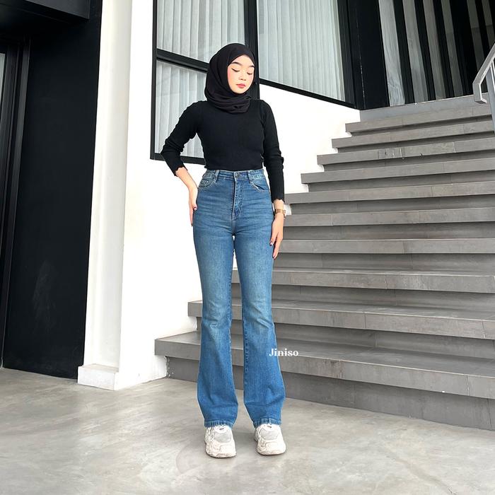 JINISO HANGOUT - 716 Cutbray Stretch Highwaist Pocket Celana Jeans Wanita