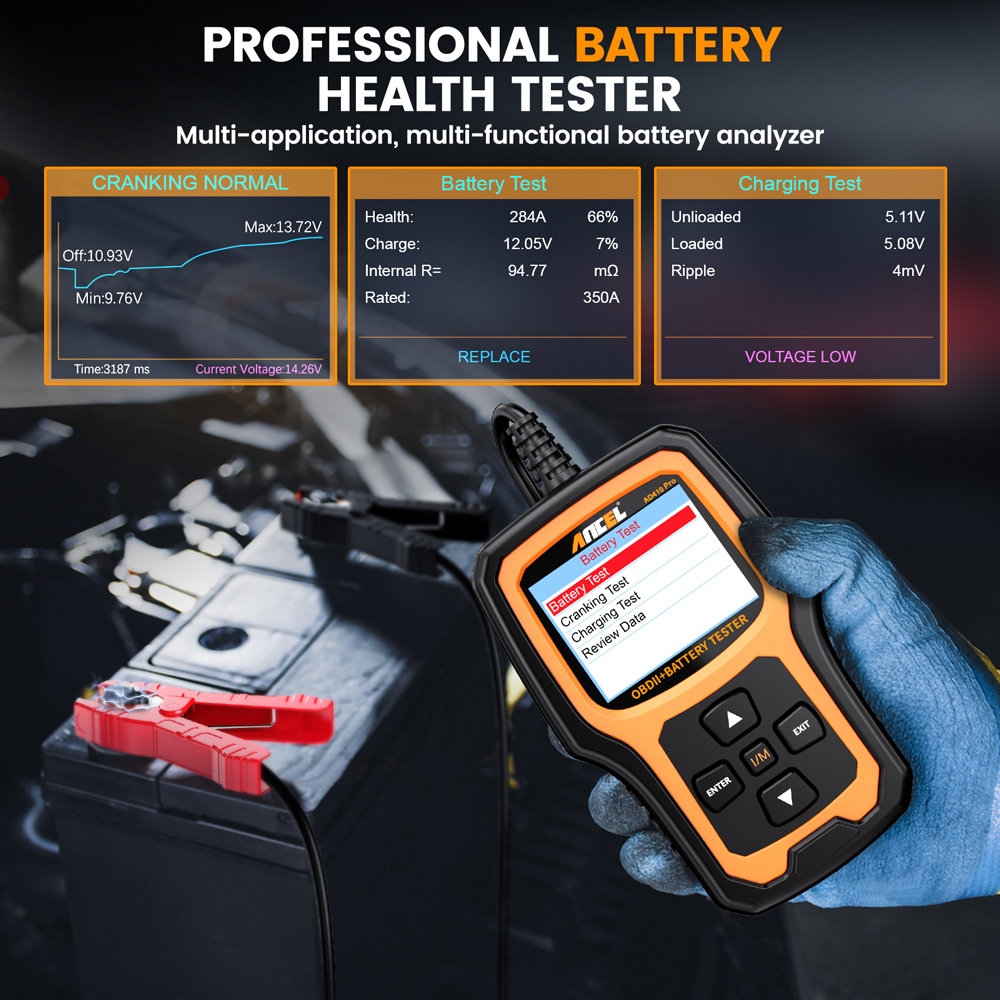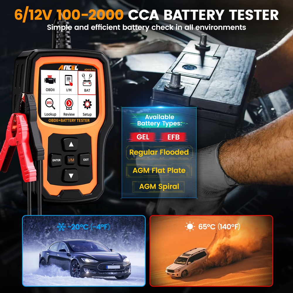 ANCEL AD410 PRO OBD2 Scanner dengan 6V 12V Auto Battery Tester Check Engine Light Code Cranking Charging System Analyzer