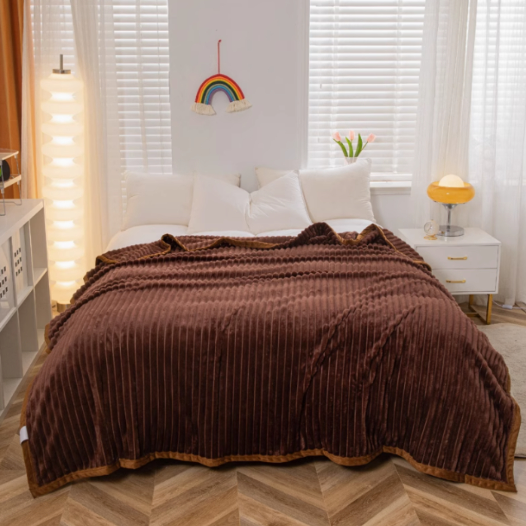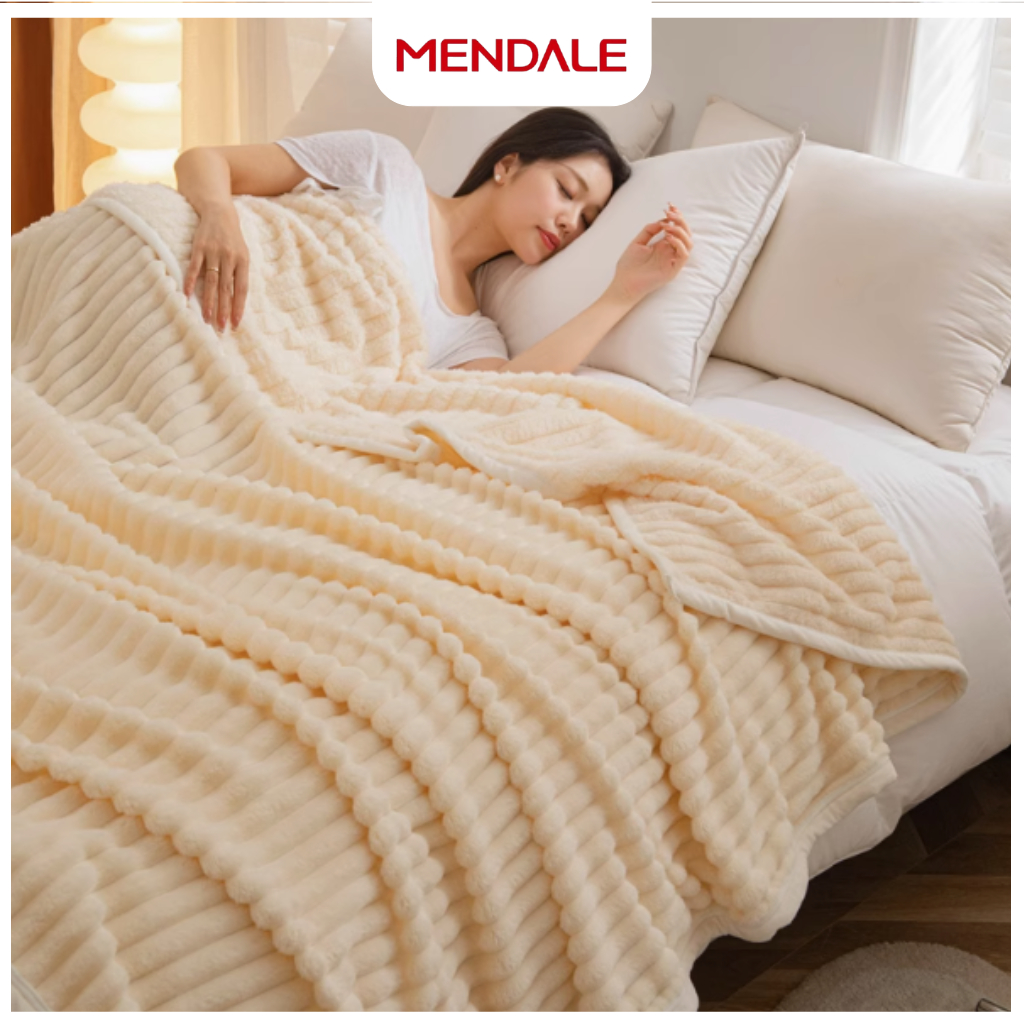 Mendale Selimut Dewasa Ukuran 200x220 Polos Embos Motif Salur Bulu Polyester