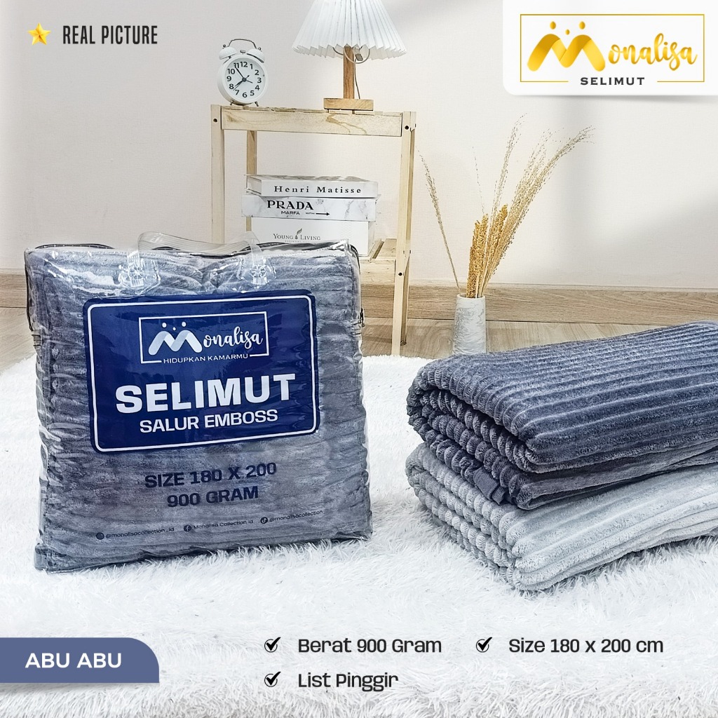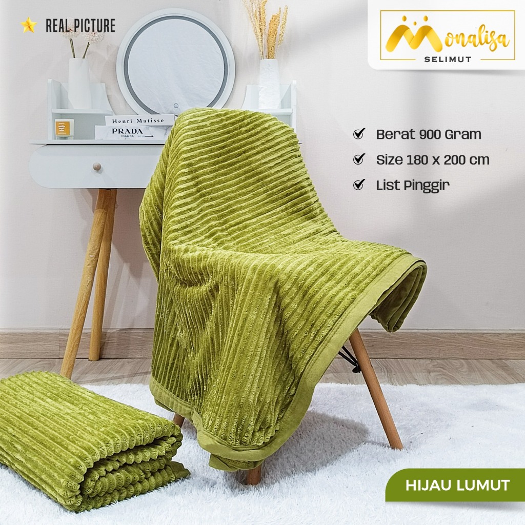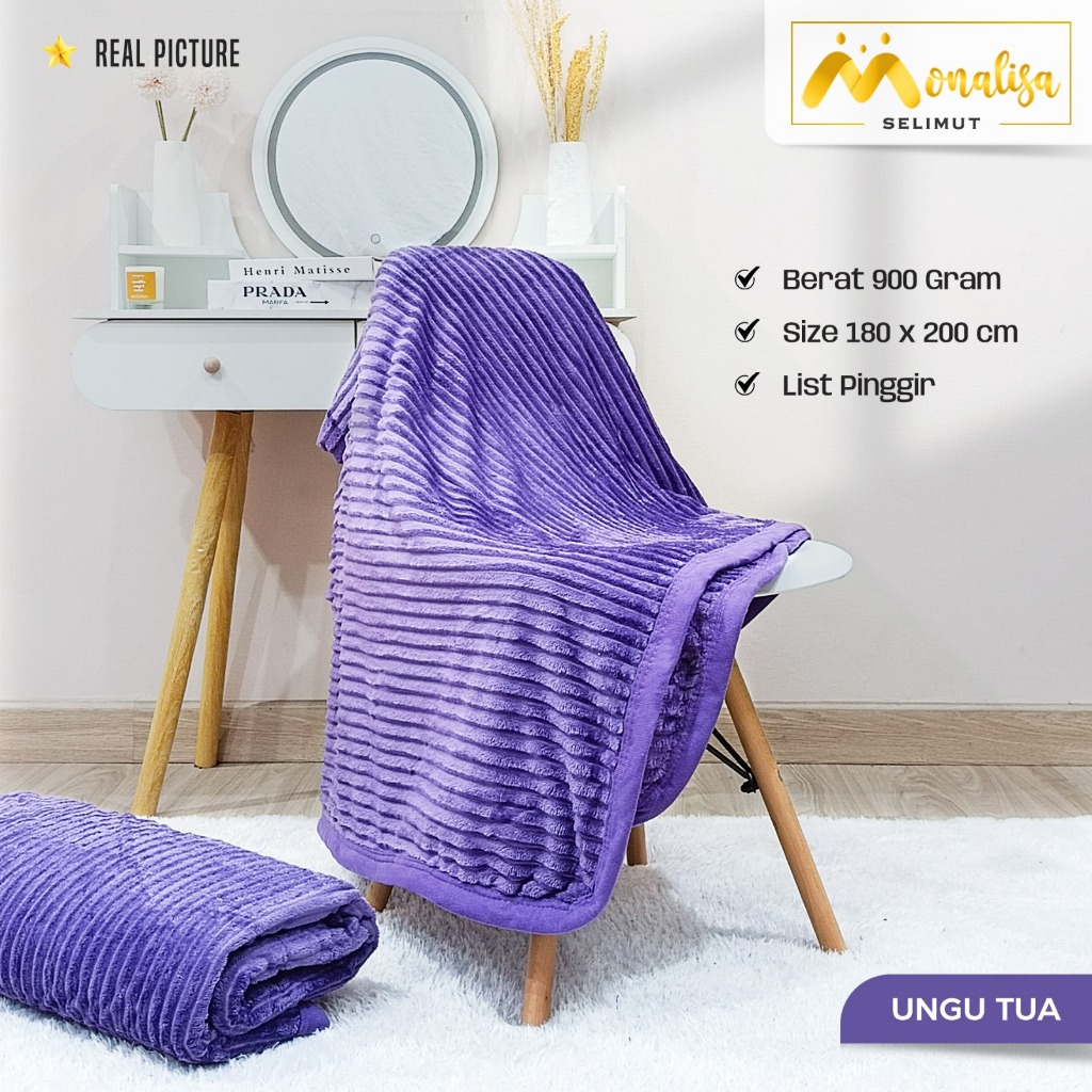 Monalisa Selimut Bulu Salur Polos Uk 180 x 200 cm (900 Gram) Bahan Polyester / Aneka Warna -3