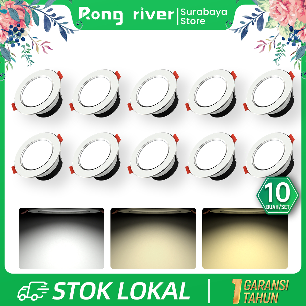 RONG RIVER [Surabaya] 5W 3Warna Lampu Downlight Plafon Lampu Plafon 10Buah
