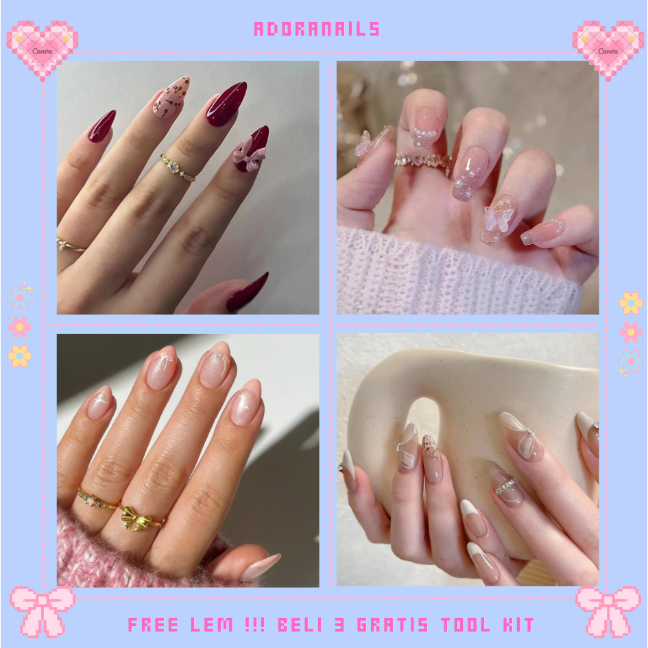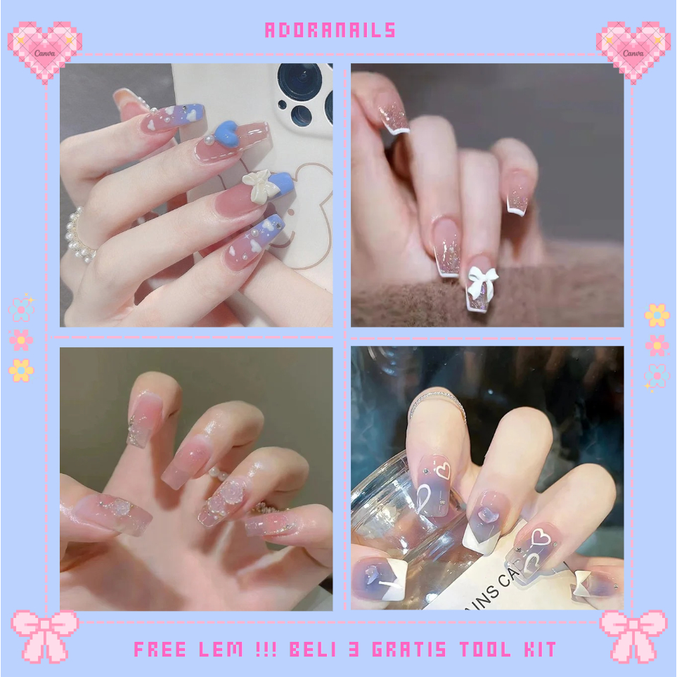 [Mall] [3D PART 1] - KUKU PALSU NAIL ART LUCU CUTE DAILY MODEL BARU 24 PCS DAN LEM UNTUK WISUDA WEDDING ACARA