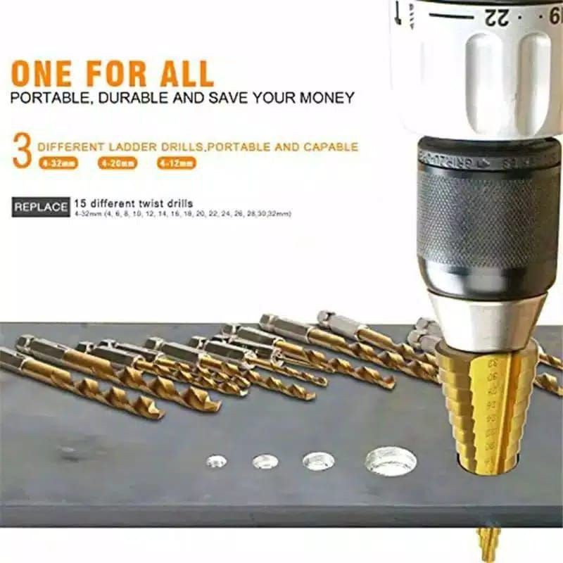 FREE ONGKIR [BEST QUALITY] MATA BOR PAGODA 1 SET 3PCS SPIRAL HSS STEEL TITANIUM COATED