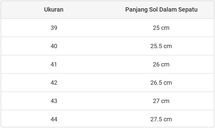 39 : 25 cm , 40 : 25,5 cm , 41 : 26 cm, 42 : 26,5 cm , 43 : 27 cm , 44 : 27,5 cm