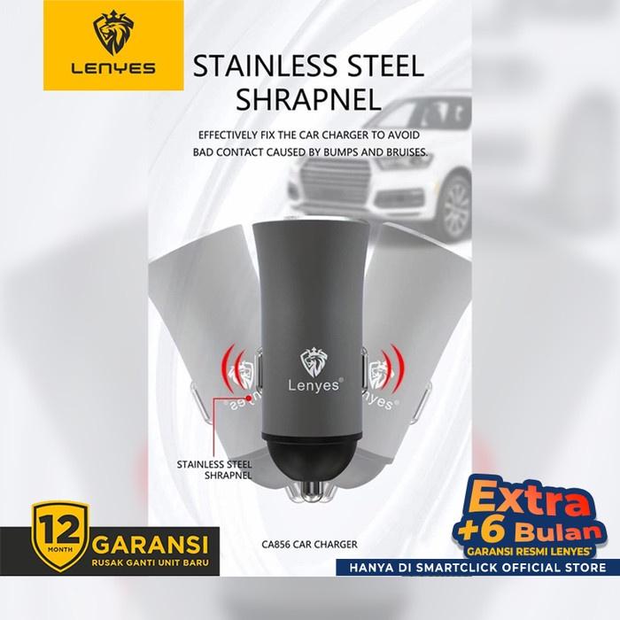 DP 0 LENYES CA856 CHARGER MOBIL FAST CHARGING 2 USB 24A STAINLESS ORIGINAL