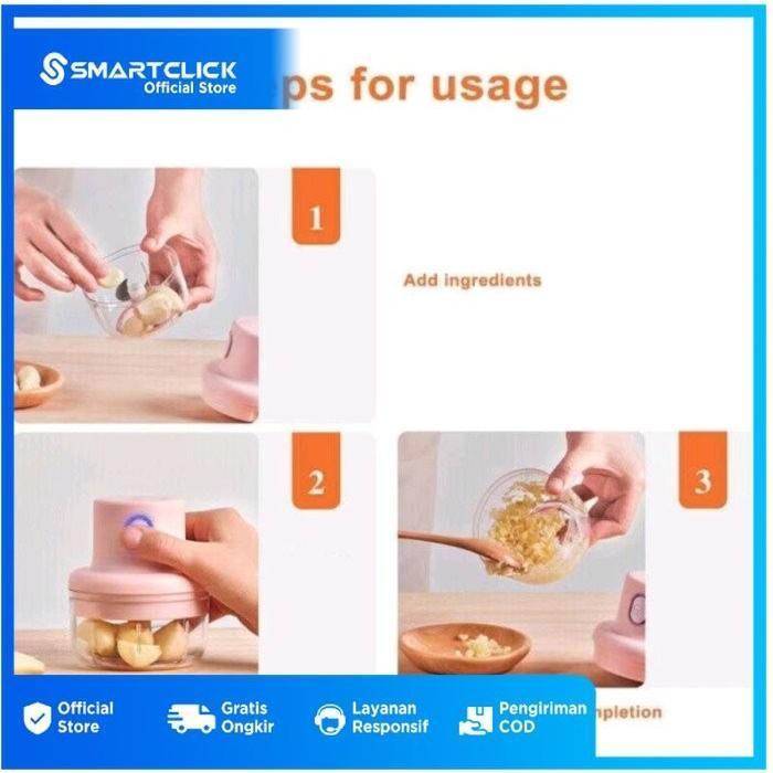 DP 0 CHOPPER MINI BLENDER PORTABLE ELECTRIC USB CHARGE 250ML HIGH CAPACITY BIRU KABEL PINK