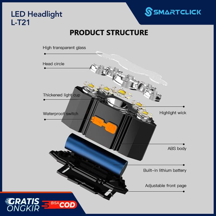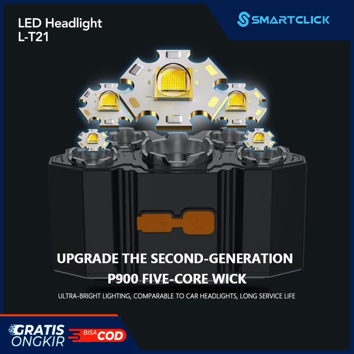 DP 0 HEAD LAMP LIGHT LAMPU SENTER KEPALA 5 LED 4 MODE USB CHARGE LT21
