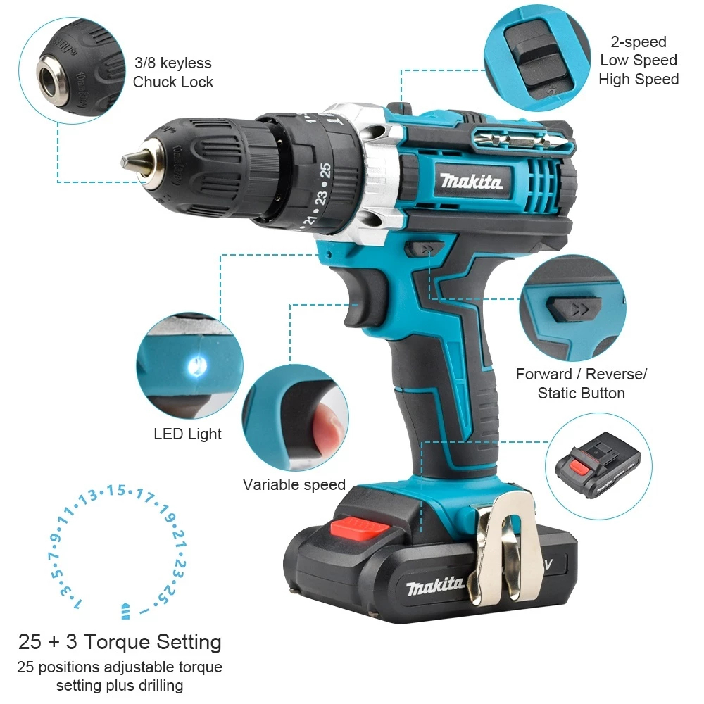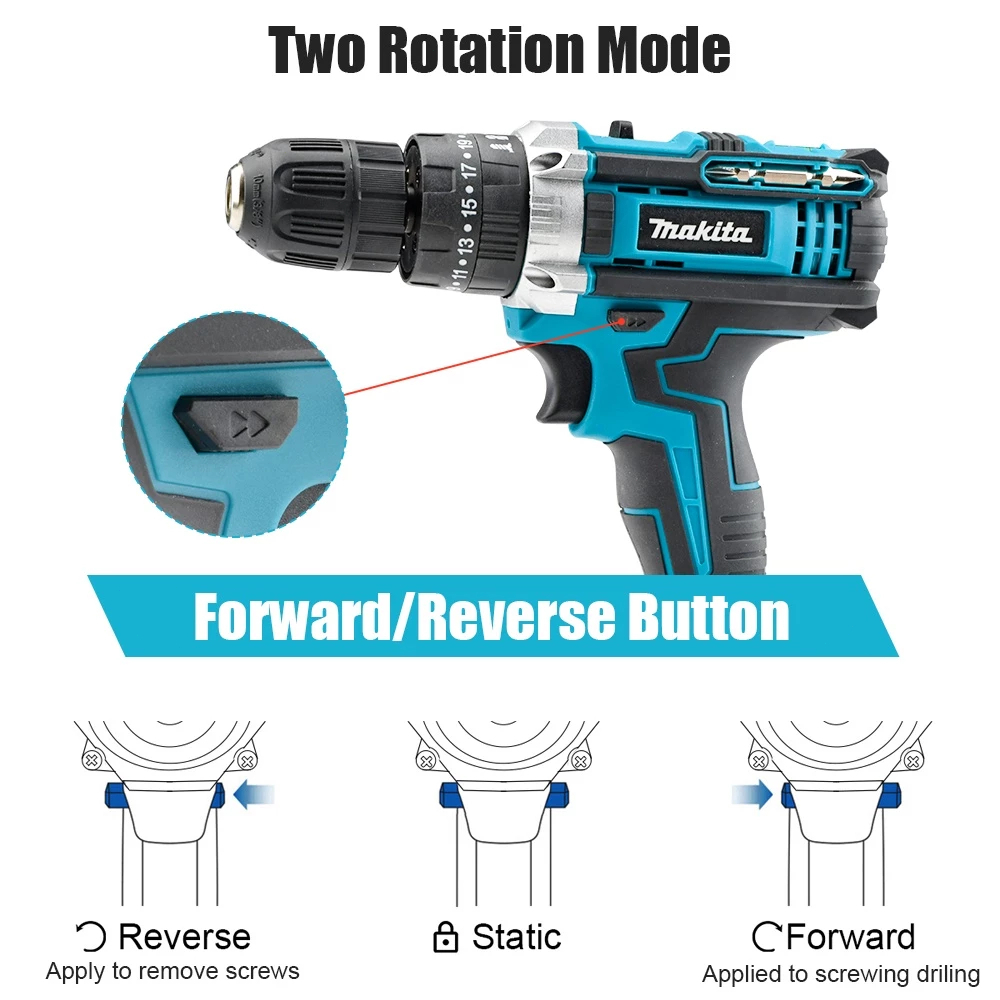 Makita 36V Bor Cordless Impact Drill 2x Baterai Alat Listrik Set Sekrup Tanpa Kabel