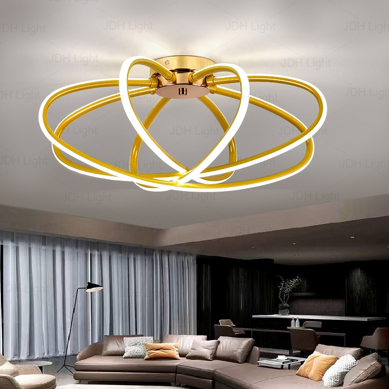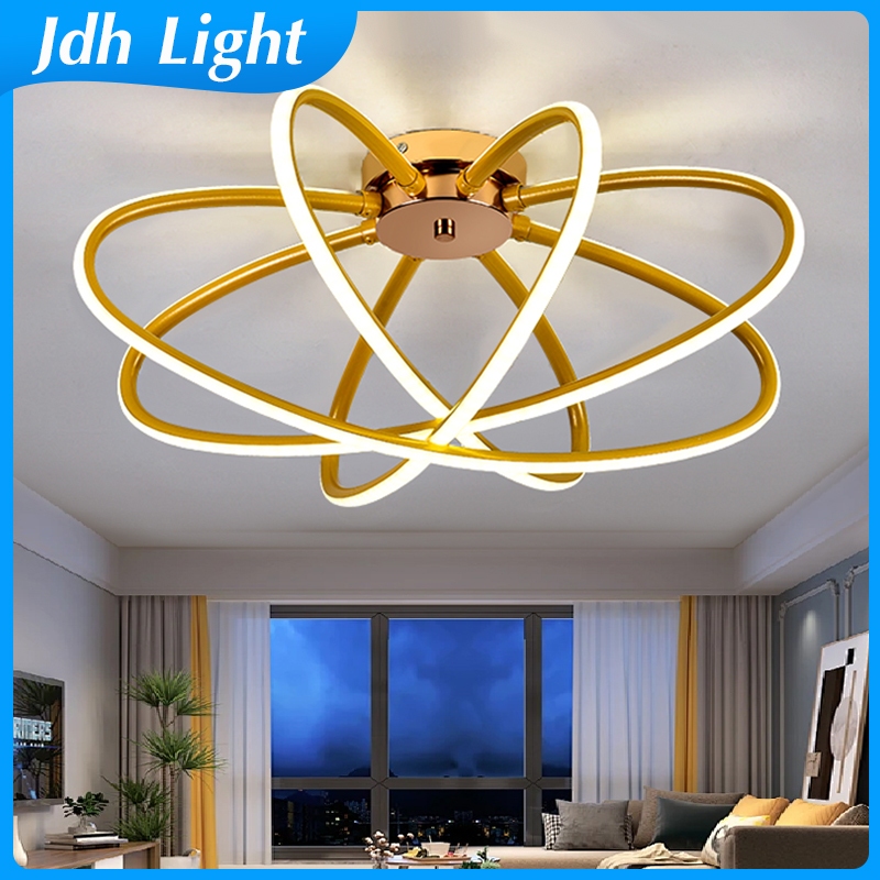 Lampu Plafon LED 3 Warna - Lampu Ruang Tamu ern Lampu Makan Gaya Nordik & Lampu Kamar Mewah Desain Emas Elegan Lampu