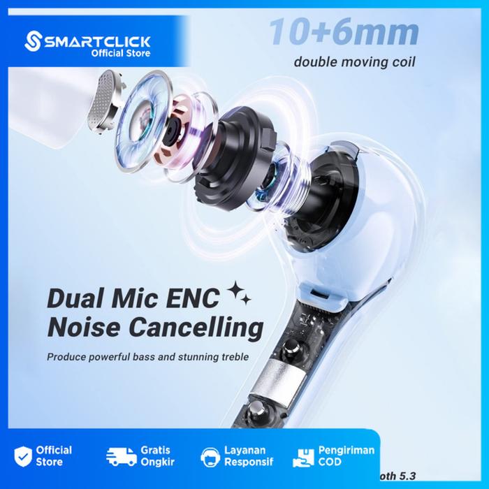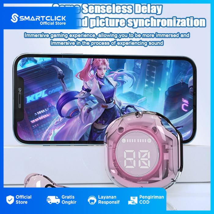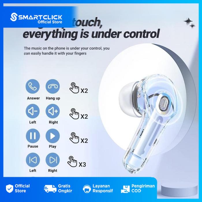 DP 0 SMARTCLICK HEADSET BLUETOOTH TWS LED DISPLAY TRANSPARAN HIFI EXTRA BASS SMART TOUCH W