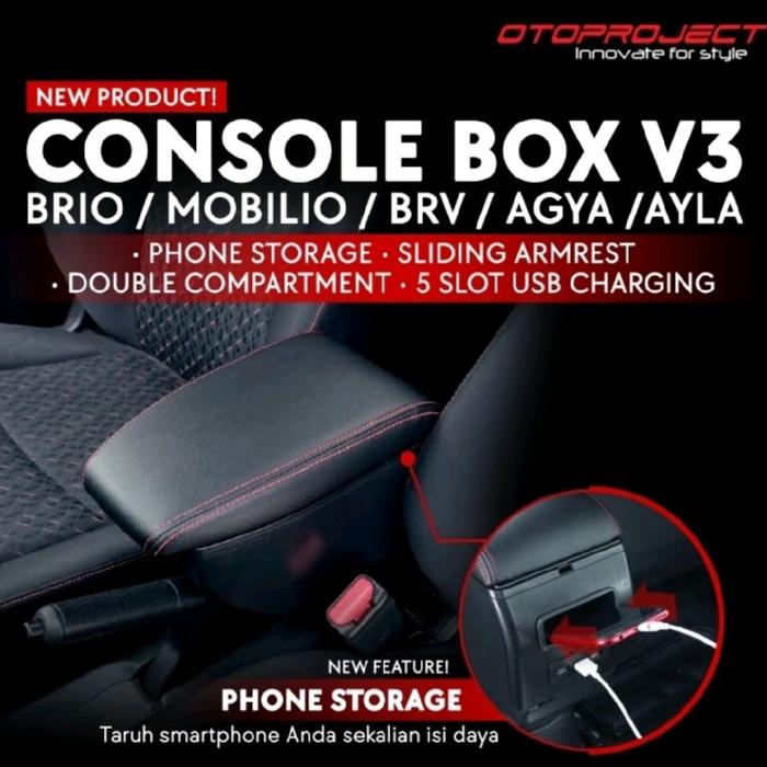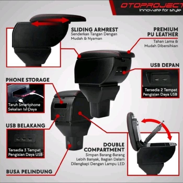 TERLARIS OTOPROJECT CONSOLE BOX ARMREST TENGAH HITAM DENGAN USB ALL NEW BRIO 20182025