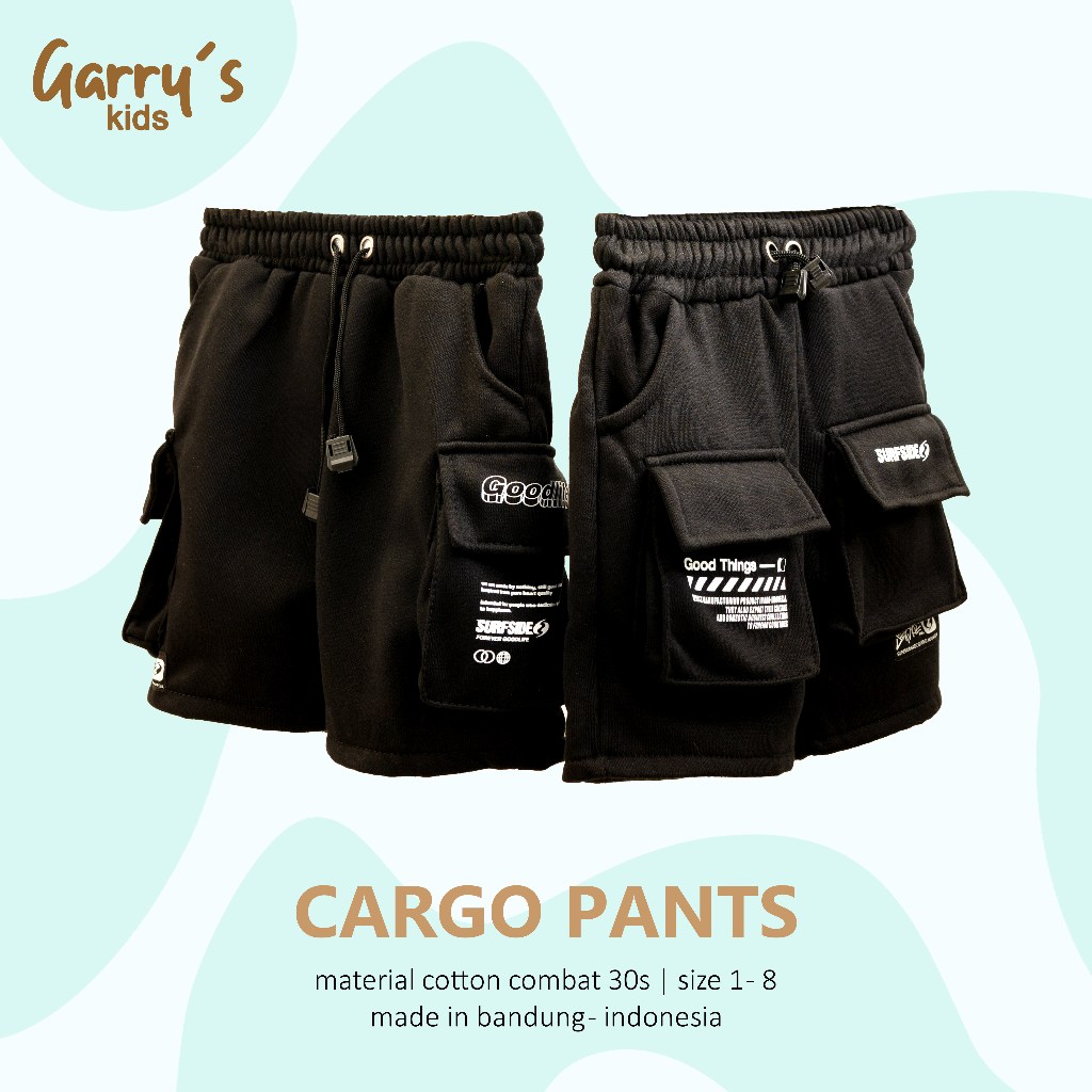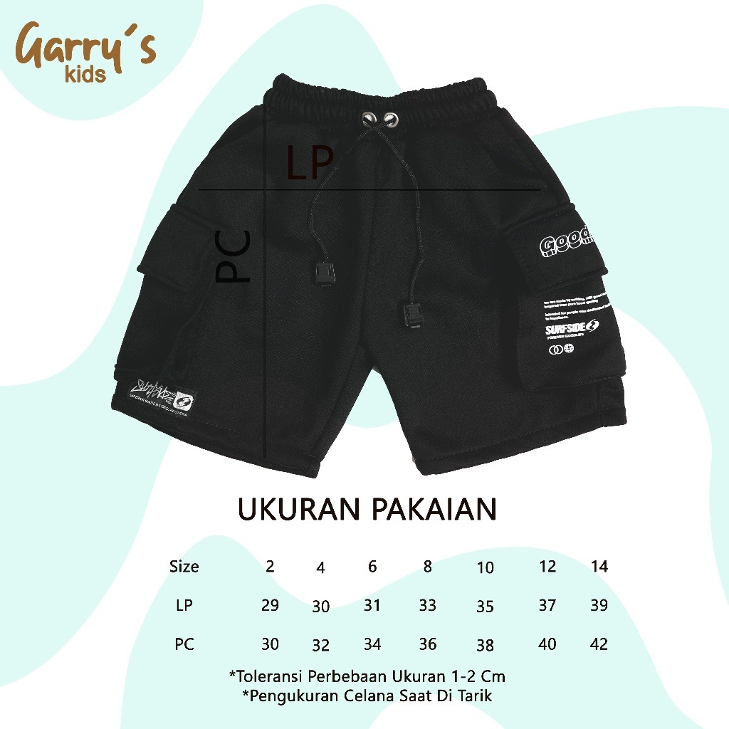 Celana Pendek Cargo Saku Samping & Depan Anak 2-14 Tahun Melar Unisex Celana anak Garrys