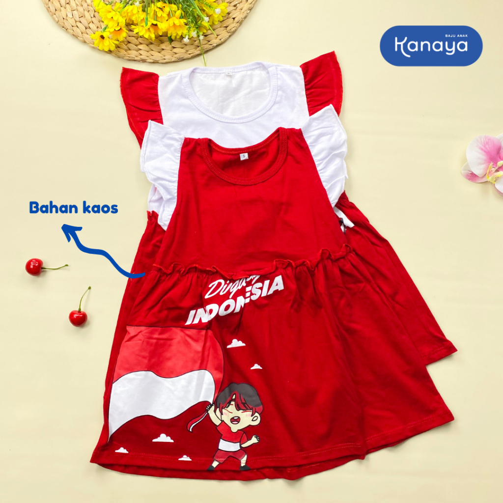 DRESS AGUSTIN TEMA KEMERDEKAAN MERAH PUTIH BAJU AGUSTUSAN BAHAN KAOS 2-6 TAHUN