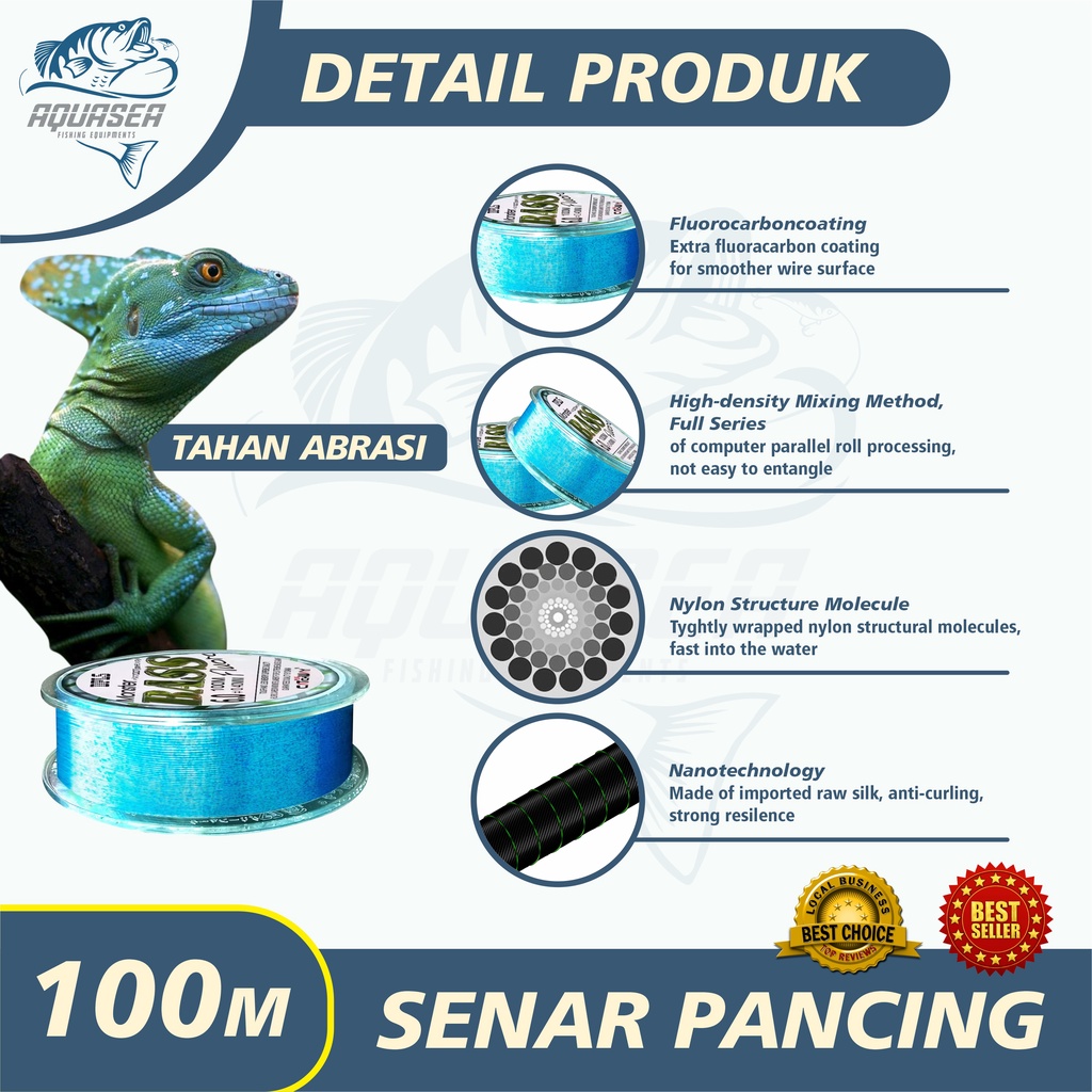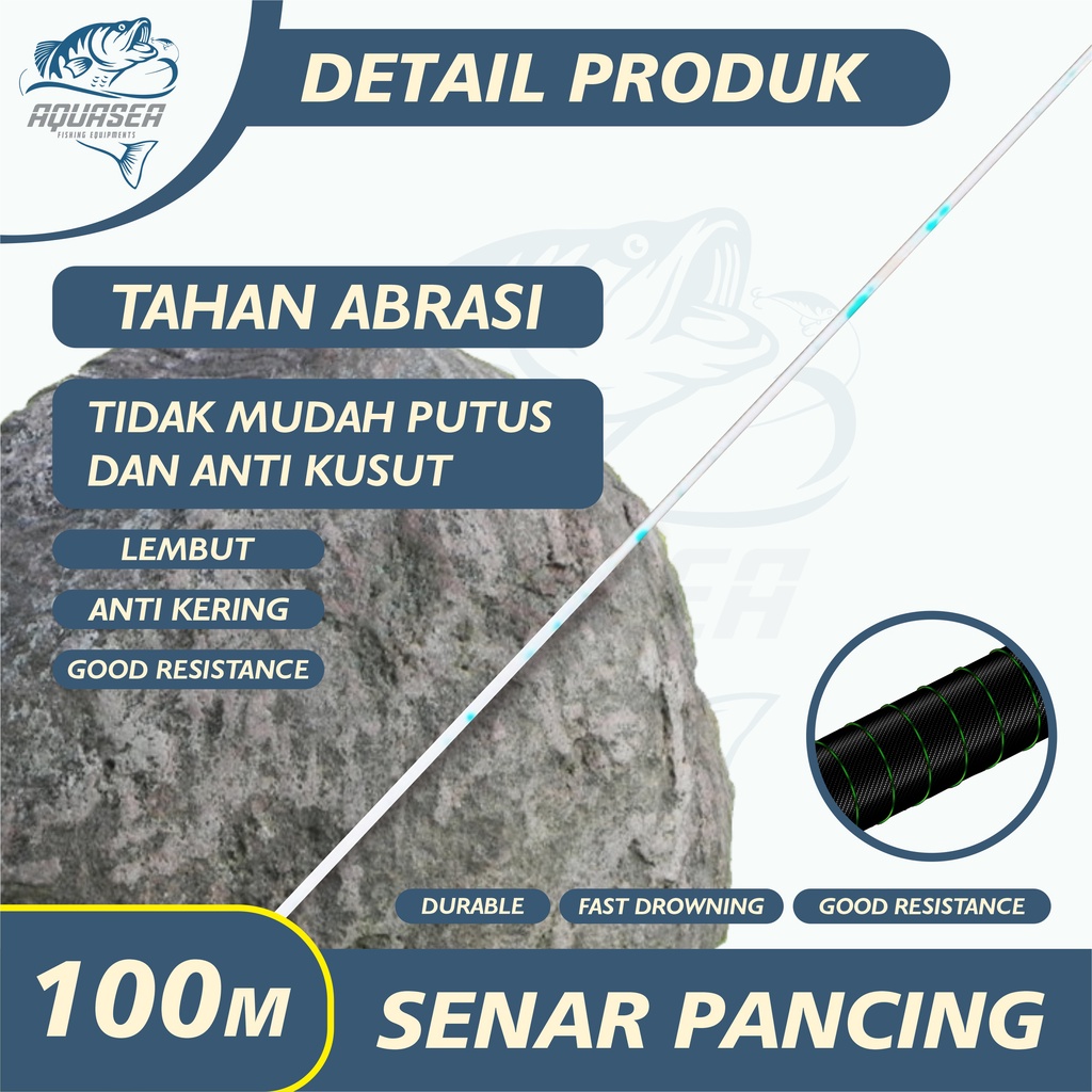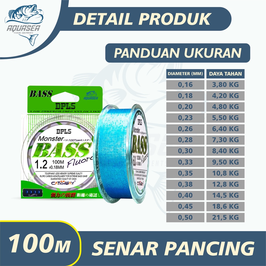 GRATIS ONGKIR QUASEA Tali Pancing Bass FLUOROCARBON 100M Warna Biru Senar Pancing Fishing StrengthSangat kuat