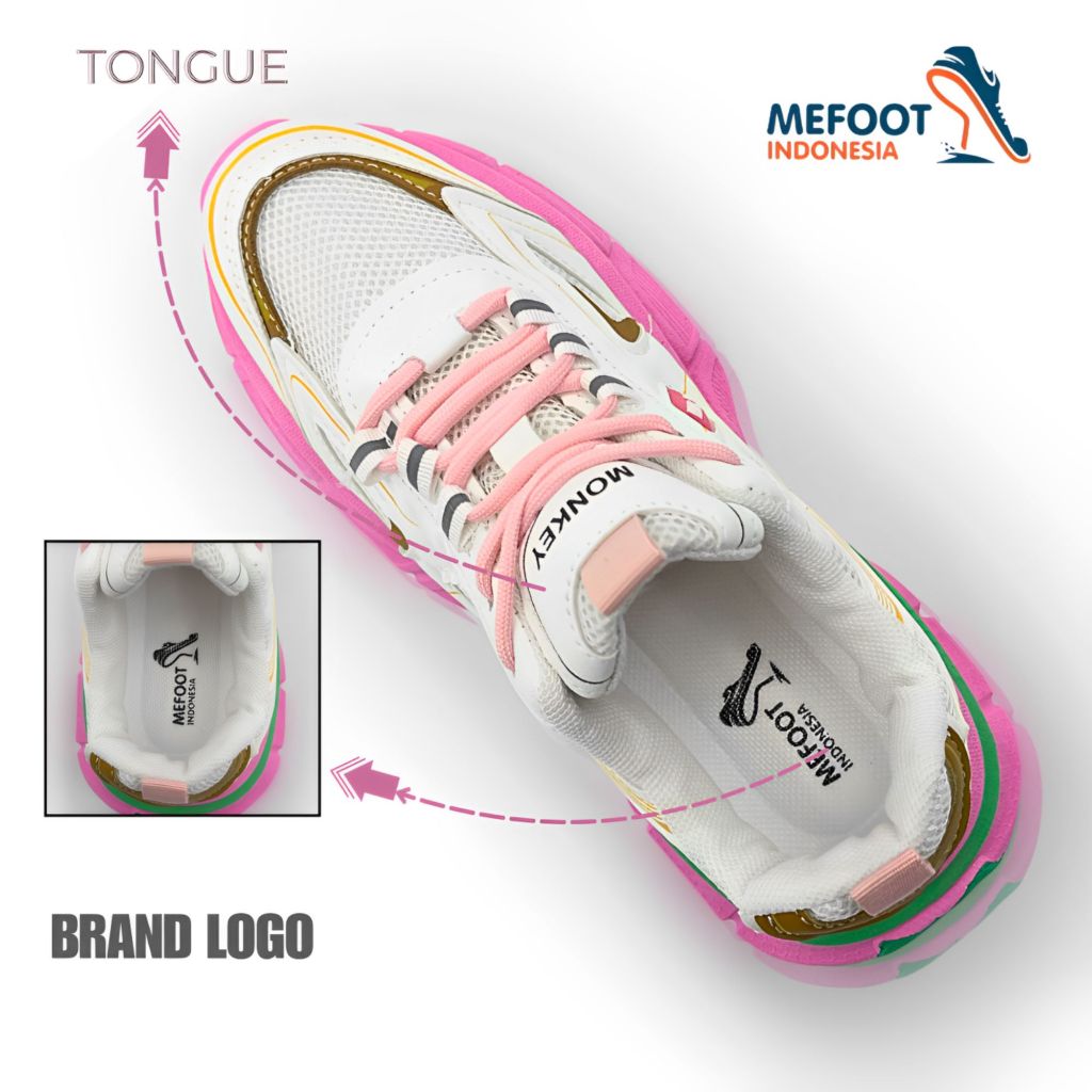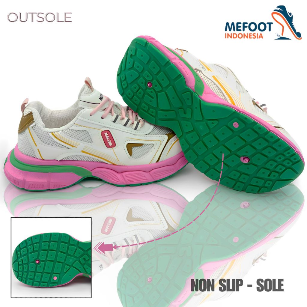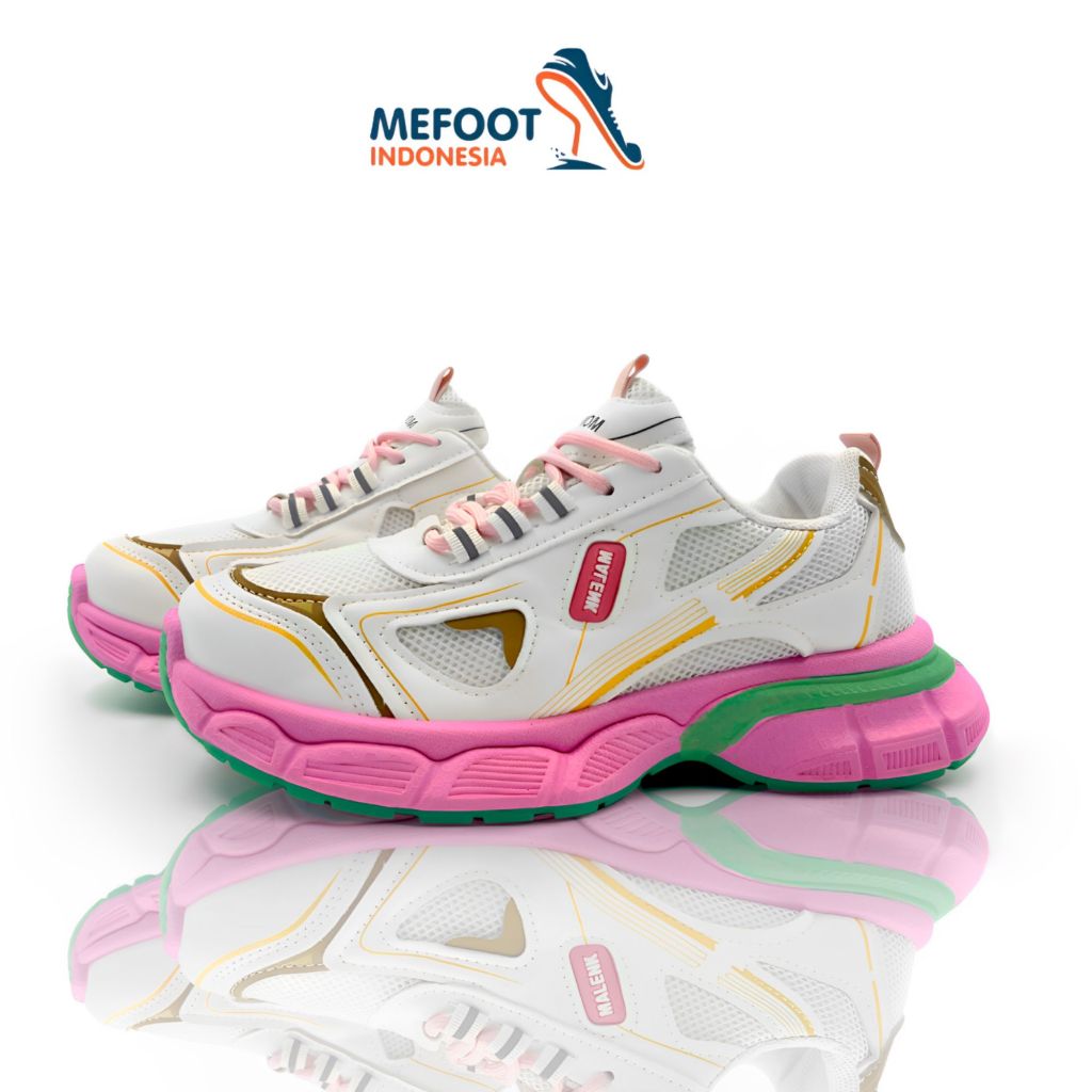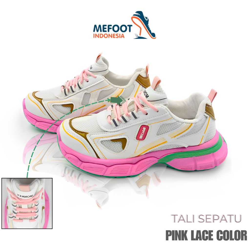 MFI Haechan "Free Box" Sepatu Wanita Sneakers White List Pink And Green Sport Shoes Kuliah Olahraga Kerja Putih,Pink Dan