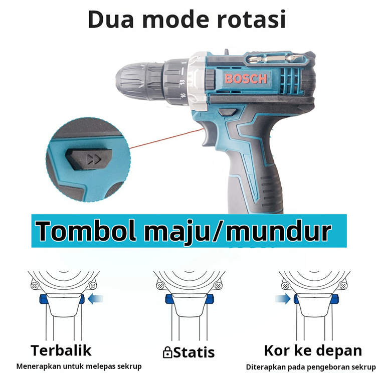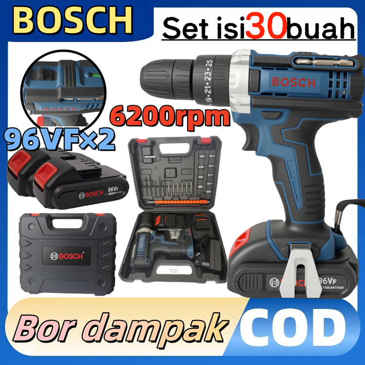 BOSCH Bor Tanpa Kabel Baterai Lithium 96V 2 Buah Cocok Untuk Mengebor Besi, Dinding, Beton, Kayu