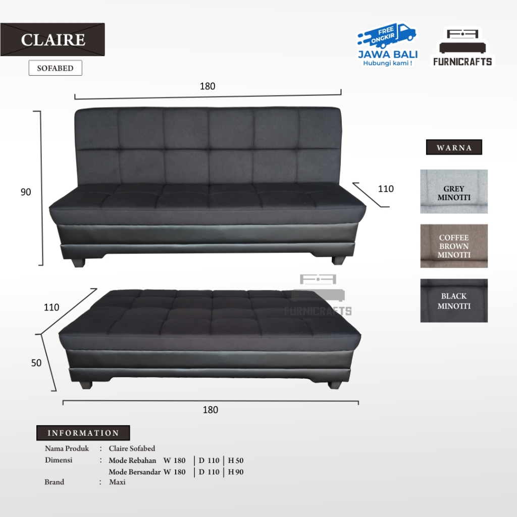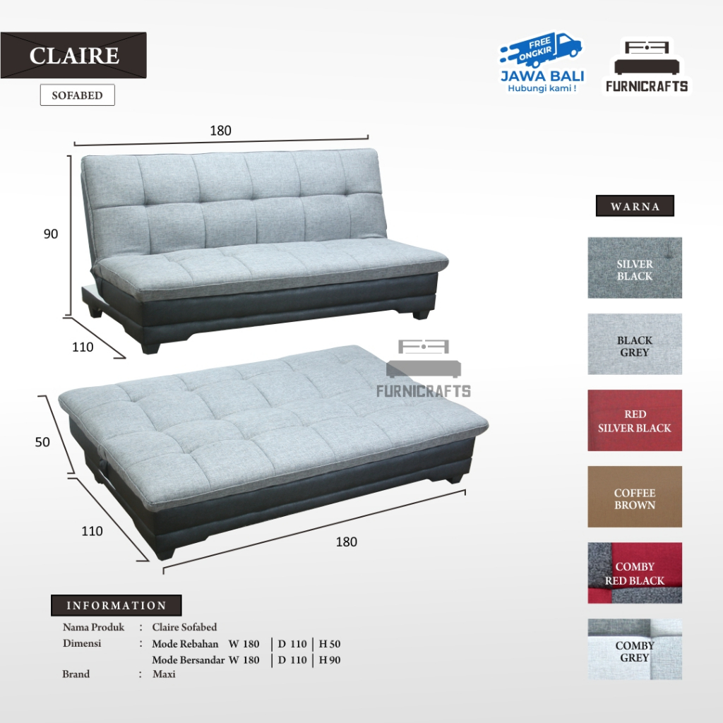 SOFA BED CLAIRE / SOFABED SOFA MULTI FUNGSI SOFA TEMPAT TIDUR