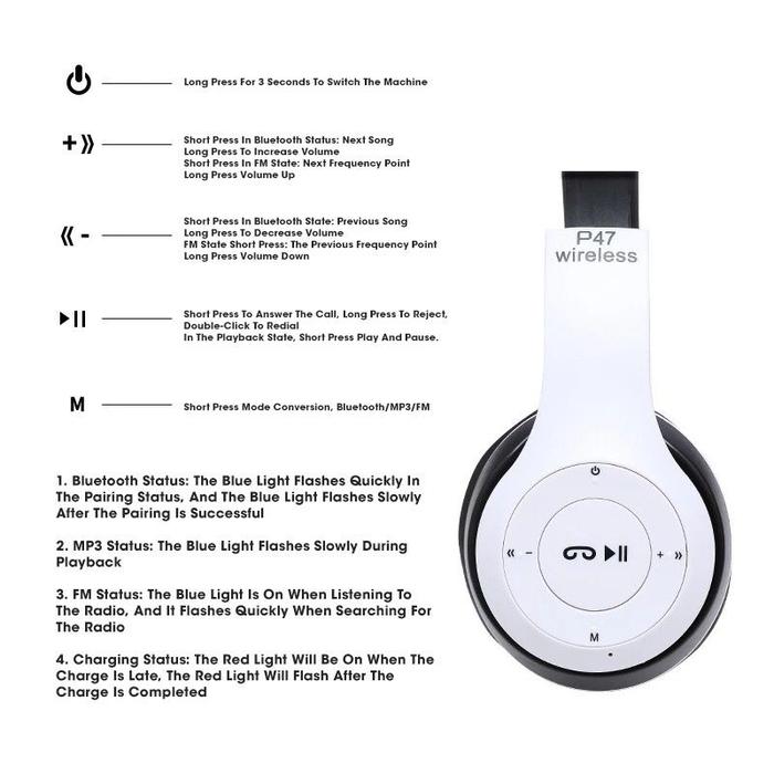 DP 0 HEADPHONE BLUETOOTH PURE EXTRA BASS HEADSET WIRELESS P47 PRO