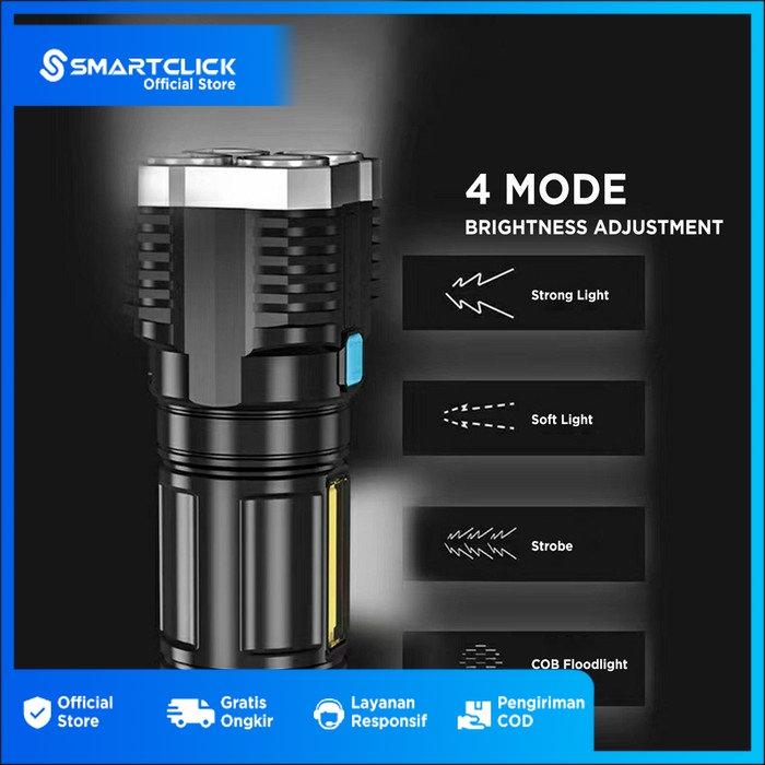 DP 0 SENTER LAMPU FLASHLIGHT LED COB LS 03 3 MODE CAHAYA 4 LED RECHARGEABLE