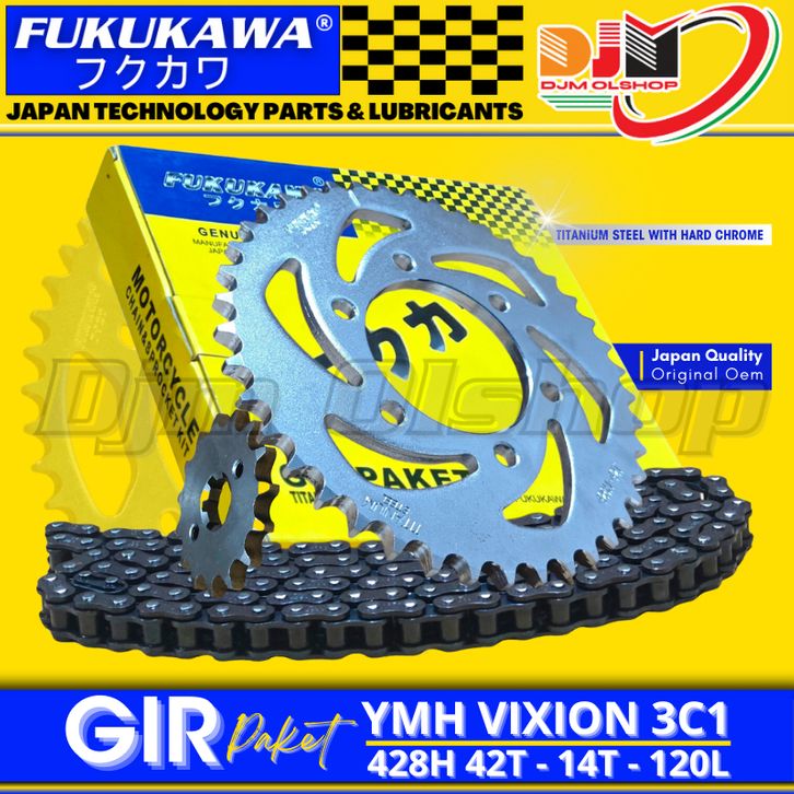 Gear Set Vixion Old 3C1 Gir Paket Vixion Rantai 428H-120L-42T-14T FUKUKAWA