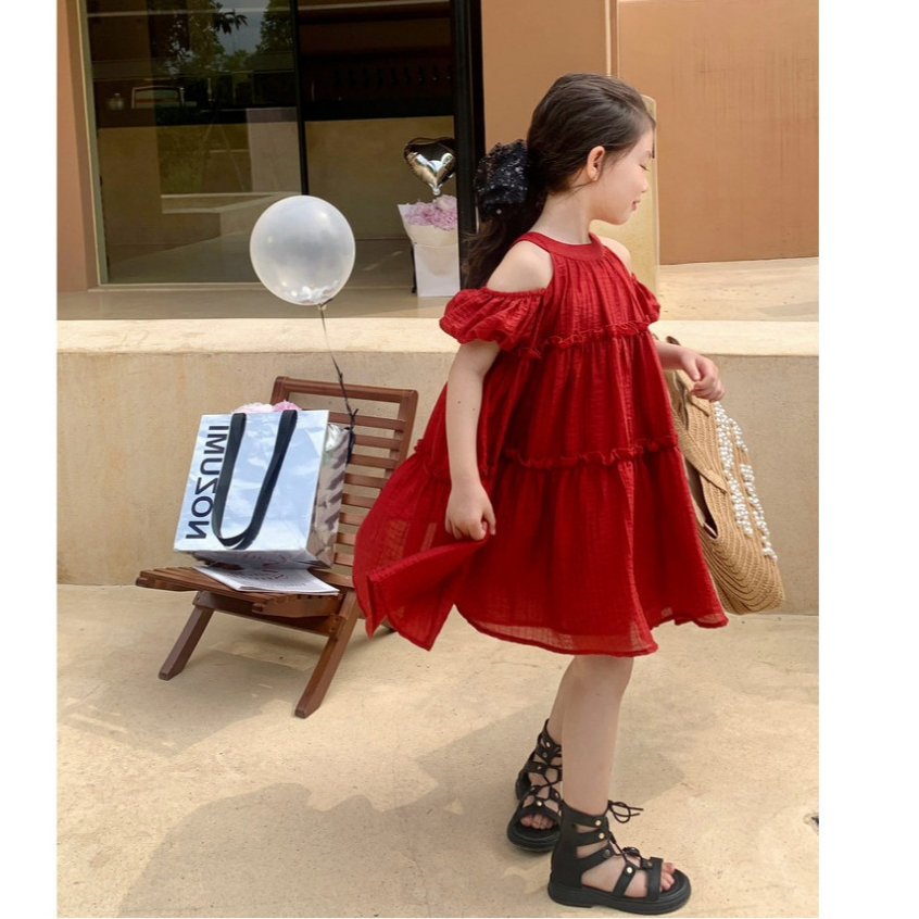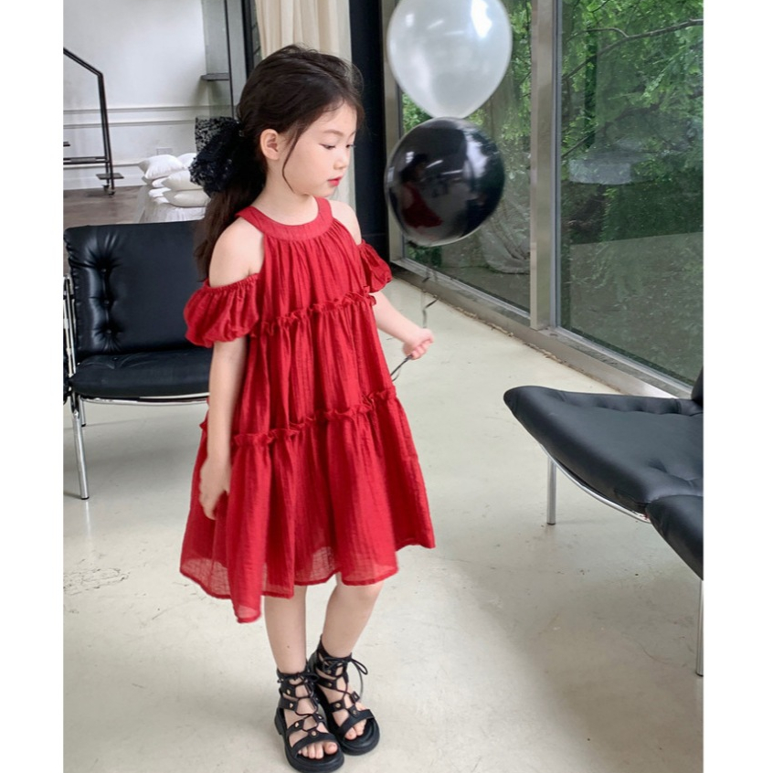 [meandboss] DR30, Dress Gaun Anak Perempuan Korea Ruffle Sabrina Cut Sleeve