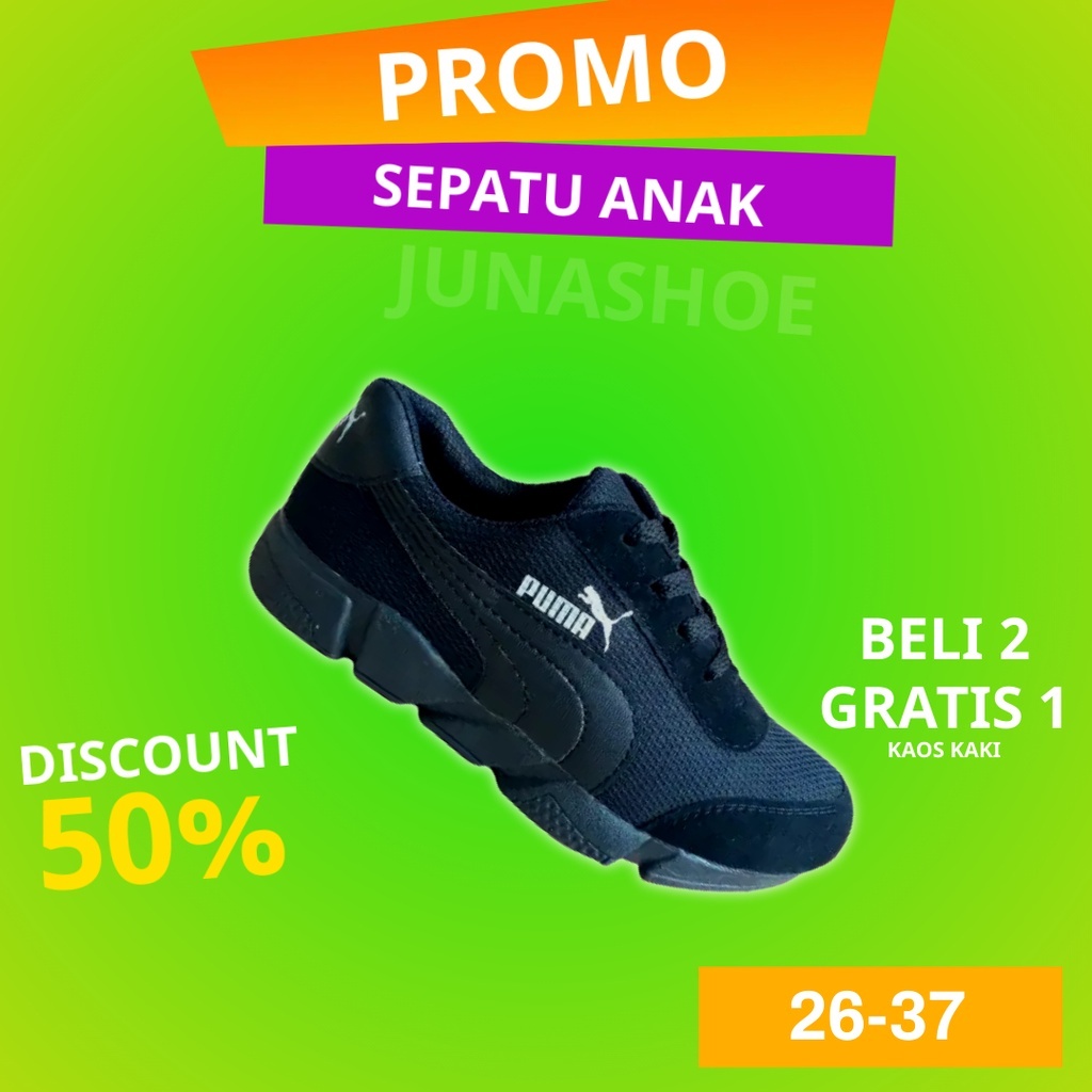 SEPATU SEKOLAH HITAM POLOS TALI ANAK LAKI LAKI PEREMPUAN SD SMP SMA USIA 6-15 TAHUN