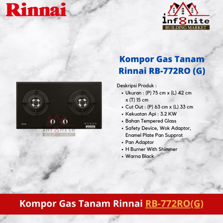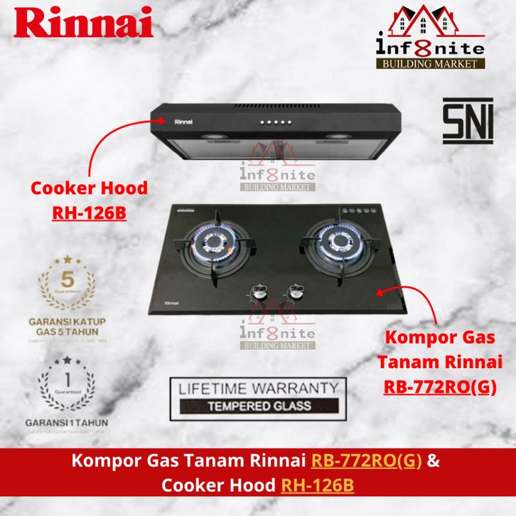 Kompor Gas Tanam rinnai penghisap Asap Built-In HOB 2 Tungku Kaca Rinnai RB-772RO G RB772ROG RB 772 ROG + Cooker Hood