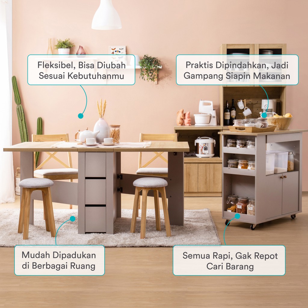 Dekoruma Yver Meja Makan Kayu Lipat Minimalis Multifungsi dengan Laci Serbaguna | Dining