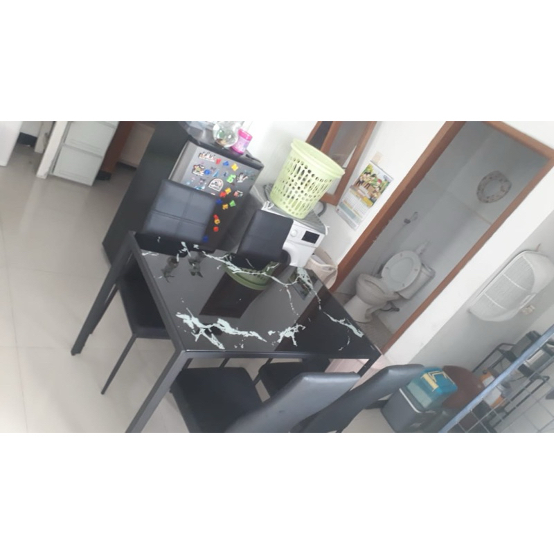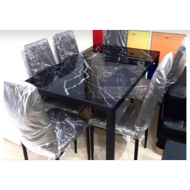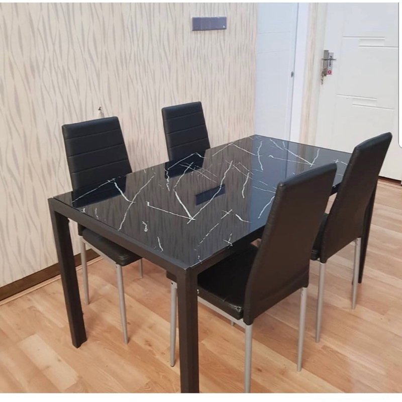 MEJA MAKAN MEJA KAKI BESI MEJA MAKAN KACA MOTIF MARMER MEJA MINIMALIS IMPORT