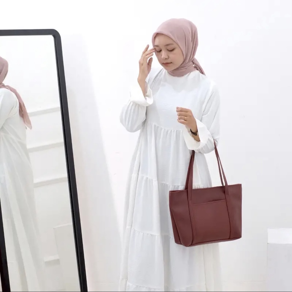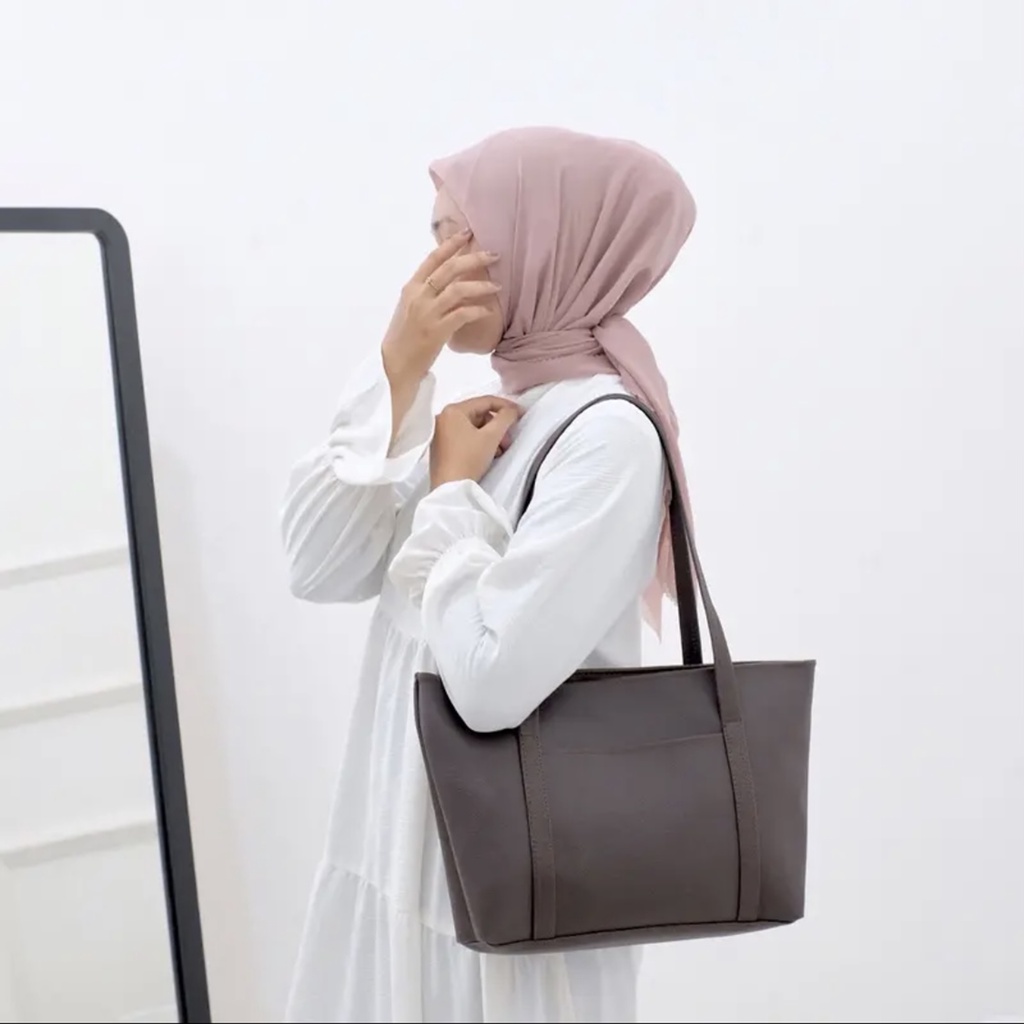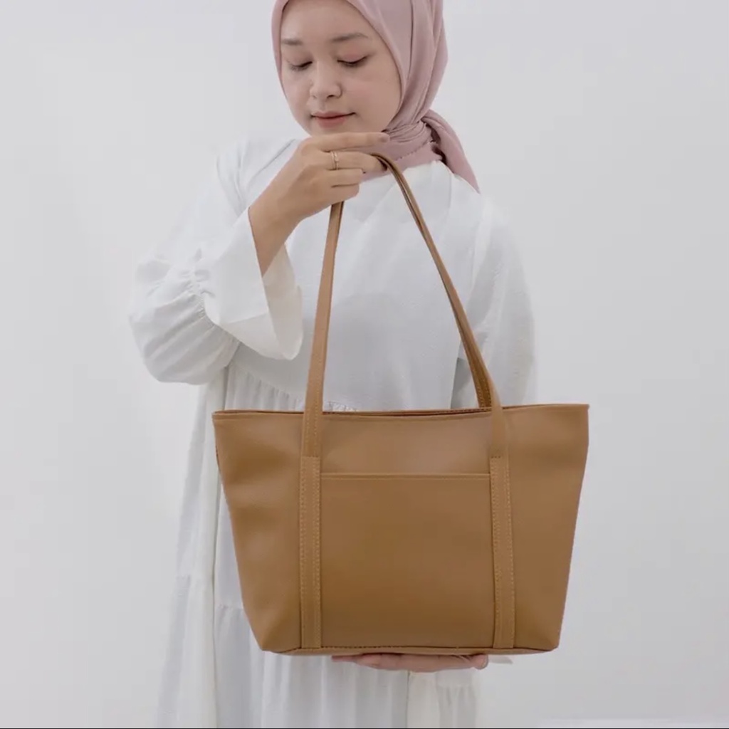 Tas Tote Bag Wanita Kulit - Totebag Kulit Saku Depan - Tas Wanita - Tas Wanita Kekinian 2023 - Tas Pengajian - Tas Bahu