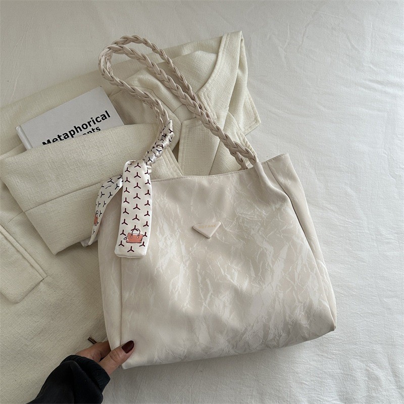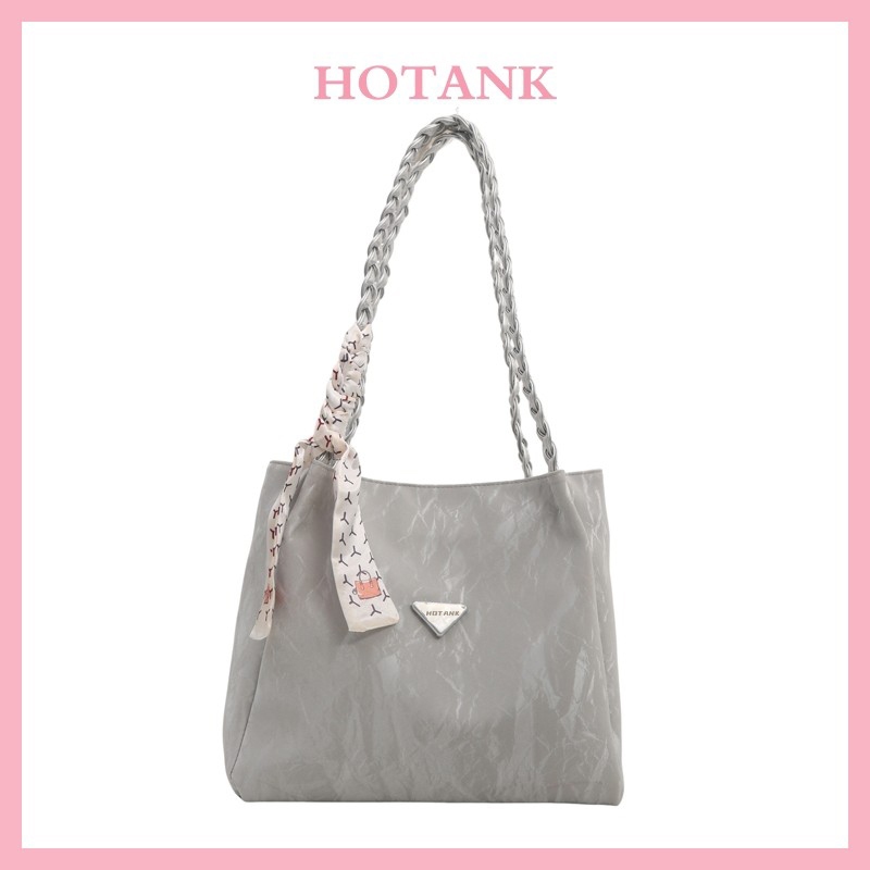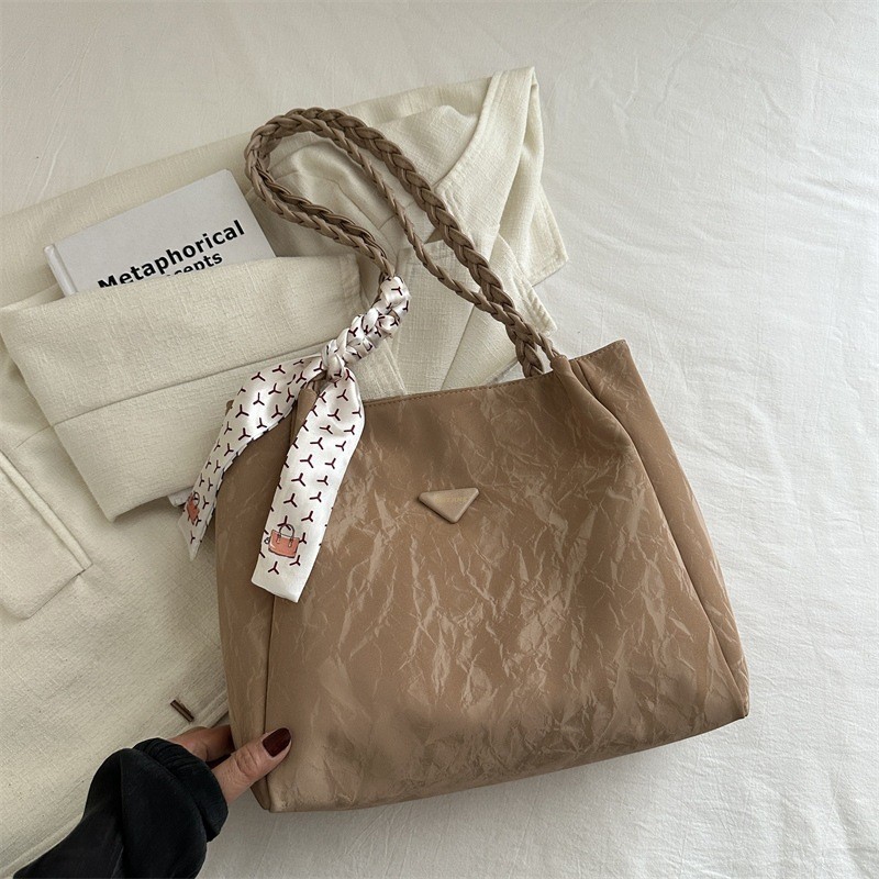 HOTANK Tas Jinjing Ikat Pita Wanita Kapasitas Besar Tas Bahu Yankee Trendi Tas Komuter Korea Wanita Tas Besar Tas Belanj