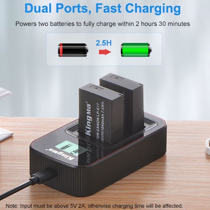 KINGMA Battery Canon LP-E17 2-Pack with Dual Charger - Lcd Display