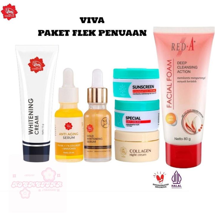 VIVA PAKET DOUBLE SERUM PERAWATAN KUSAM KERING FLEK ANTI PENUAAN AGING GLOWING PORI KOMEDO ISI 7 PCS