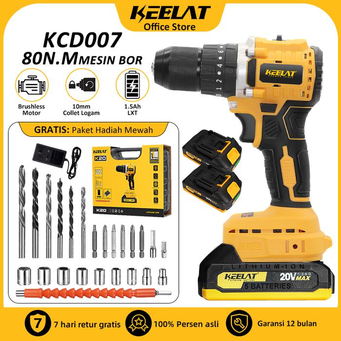 KEELAT-KCD007Brushless Mesin Bor Baterai 80N.M 10mm Bor listrik Drill Cordless Impact Drill Electric